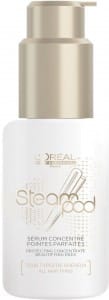 Dampf steht auch im Zentrum der innovativen STEAMPOD Pflegeprodukte mit Pro- Keratin von L’Oréal Professionnel. Das speziell auf sensibles Haar abgestimmte Pro- Keratin System wird durch Wasserdampf aktiviert. Die Pflegeprodukte werden vor der Anwendung des STEAMPODs oder anderen Hitzestylinggeräten auf das handtuchtrockene Haar aufgetragen, um das Haar optimal auf das Styling vorzubereiten und es nachhaltig zu schützen und zu pflegen. Die hohe Pro-Keratin Konzentration sorgt dabei für maximale Leistung. Die STEAMPOD Pflegelinie umfasst eine glättende Milch und eine Créme (für feines oder kräftiges Haar) sowie ein schützendes Serum mit nährenden Ölen für stark strapaziertes Haar beziehungsweise geschädigte Haarpartien: