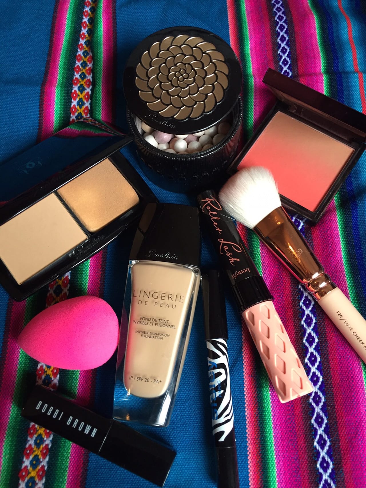 Leider bin ich aber nicht mit makelloser Haut gesegnet – jeden Tag Foundation ist also Pflicht. Hier ist mein absoluter Favourit Lingerie de Peau von Guerlain (ca. 53 Euro), die ich mit dem Beauty Blender (ca. 20 Euro) auftrage. Sie deckt alle Rötungen ab und gibt selbst meiner Haut einen Glow. Darüber kommt im gleichen Farbton der Puder Lingerie de Peau Nude Power Compact Foundation von Guerlain (ca. 58 Euro). Auf die Wangen stäube ich etwas Rouge in Pfirsich, im Moment die limitierte Proenza Schouler Variante Blush Ombre Sunset Beach von MAC (ca. 31 Euro). Als Cocealer verwende ich den Intensive Serum Corrector in Light Bisque und darüber in Warm Beige von Bobbi Brown (je ca. 45 Euro), diese Farbkombi hat mir ein Make-up Artist der Marke empfohlen und er hatte Recht. Ebenfalls jeden Tag verwende ich Mascara, aber nur von Benefit. Meine liebste ist They’re Real (ca. 26 €), im Moment teste ich aber Roller Lash (ca. 25 Euro) und bin trotz schmalem Gummi-Bürstchen happy damit. Sollte ich doch mal Lust auf Lidschatten haben, benutze ich die Phyto-Eye Twist Sticks von Sisley (ca. 36 Euro) in Bronze oder Oliv-Metallic, manchmal genügt es schon damit einen Lidstrich zu ziehen. Die Puderperlen schimmernden Perles Météorites von Guerlain (ca. 53 Euro) zählen zu meinen Lieblingsmake-up Produkten, weil sie einfach so gut riechen, ich wünschte diesen typischen Guerlain Duft gäbe es als Parfum.