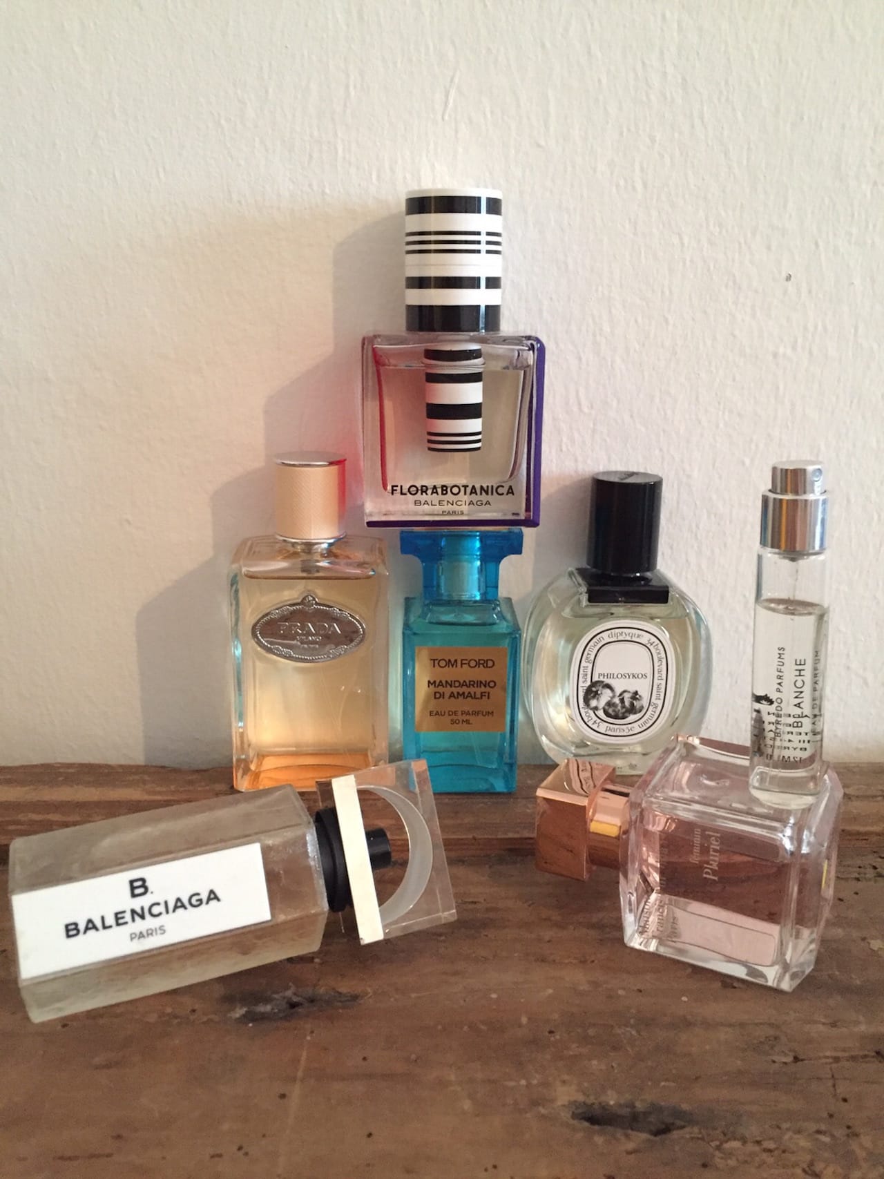 – bis heute einer meiner Lieblingsdüfte, den ich gerne zum Ausgehen trage. Als es diesen Sommer unerträglich heiß im Cosmo-Büro war, testete ich aus August-Langeweile Mandarino di Amalfi von Tom Ford (ca. 100 Euro), der blaue Flakon hat mich bei über 35 Grad irgendwie angelacht – und überzeugt. Der leichte Mandarinenduft ist der ideale Begleiter an heißen Tagen zu Jeansshort, weißem T-Shirt und Birkenstocks. In die Kategorie fällt auch der Duft Infusion Fleur d’Oranger von Prada (ca. 120 Euro), er duftet nach Iris und Orangenblüte und ist mein Buddy im Spätsommer. Wenn ich kreativ arbeiten muss, wird es fruchtig-herb: Mit Philosykos von Diptyque (ca. 105 Euro), einem ziemlich herben Feigenduft. Meine neuste Sucht ist Blanche von Byredo (ca. 103 €). Der erste Duft den ich mir selbst gekauft habe (als Beauty-Schreiber macht man das sonst nicht…), allerdings nur die Reisegröße, die schon mit 75 Euro ziemlich teuer ist. Egal, Blanche könnte auch als superteures Waschmittel durchgehen und ich würde am liebsten darin baden.