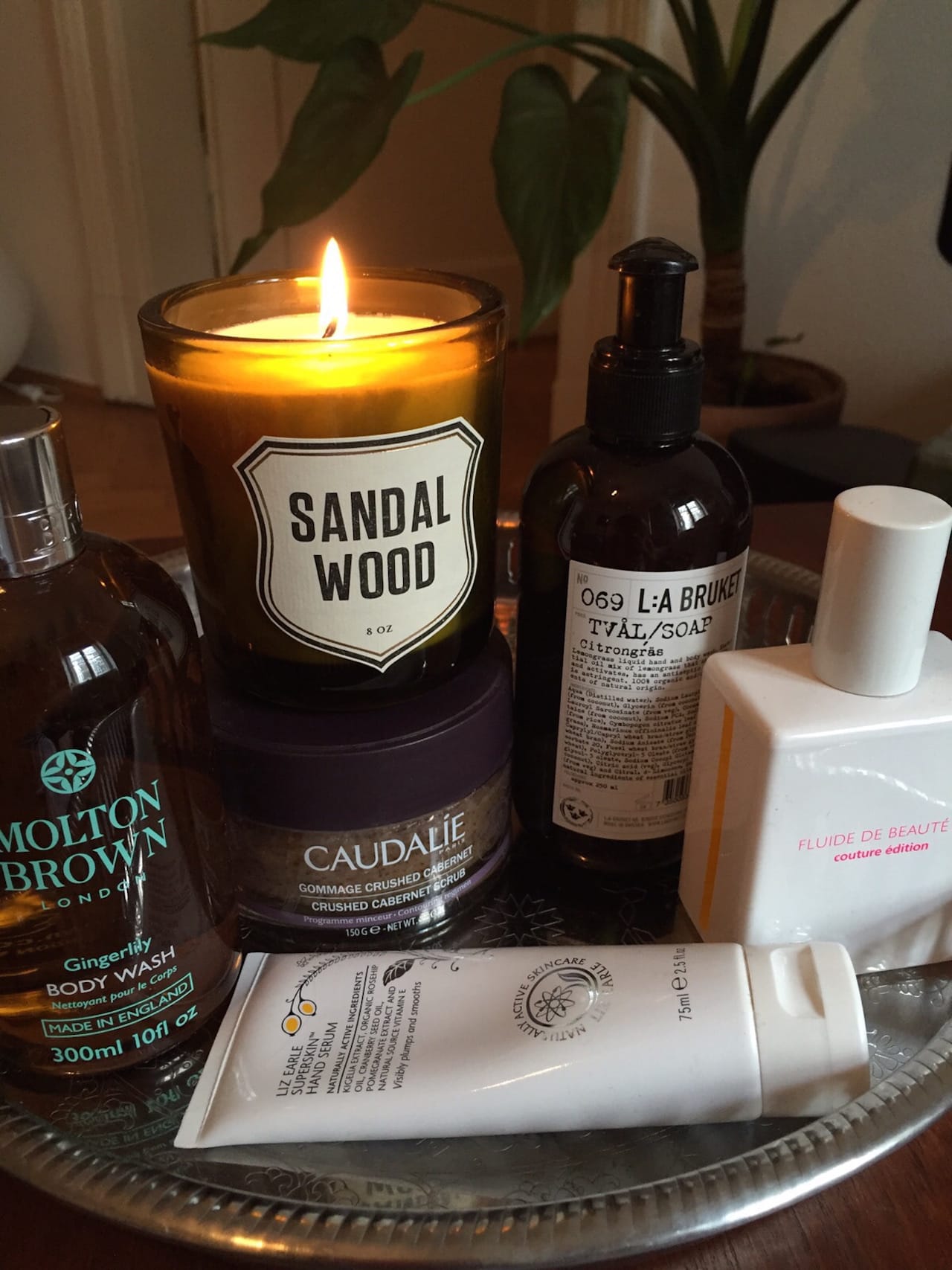 Bei Bodyprodukten werde ich manchmal auch ein bisschen zum Öko: Ich liebe das „stinkende“ Handserum Super Skin Handserum von Liz Earle (ca. 21 Euro) – durch den ersten Moment des Ökogeruchs muss man durch, dann verwandelt er sich in einen Spa-Duft. Die Tube liegt auf meinem Nachtisch, abends vergesse ich sie nicht. Sehr zum Leidwesen meines Freundes, der sowieso jeden Abend die opulenten Schwaden meiner Duftkerzensammlung aushalten muss. Den neuesten Zugang – eine Kerze fürs Badezimmer – durfte er dafür selbst aussuchen. Es ist die erste Kerze, die wir beide gut finden: Sandal Wood von &Other Stories (ca. 30 Euro). Ihn erinnert ihr Duft an die Pinienwälder vom letzten Surfurlaub in Frankreich, mich an ein cooles Yogastudio in L.A.. Ebenfalls in die Naturkind- Ecke passt die Zitronengras-Seife von L:A Bruket (ca. 21 Euro), von der schwedischen Marke finde ich alles toll – es gibt sogar Geschirrspülmittel.