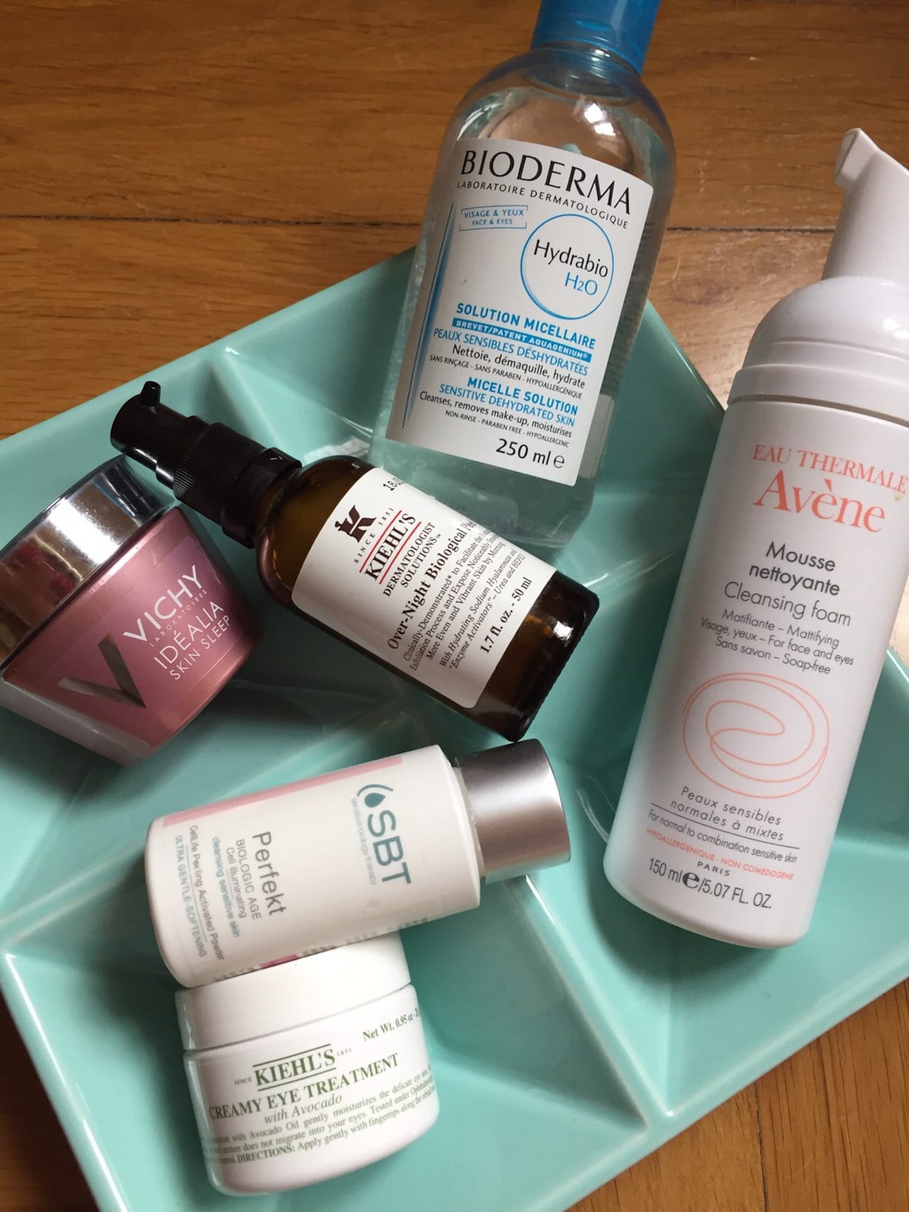 Wie schon erwähnt ist meine Haut ein Problemkind und ich habe auch mit über 30 ab und an noch Hautunreinheiten. Deswegen setze ich hier auf Apotheken-Produkte und Kiehl’s (war ja auch mal eine Apotheke …). Zum Abschminken ist mein Alltime-Favourite die Mizellenlotion Hydrabio von Bioderma (ca. 14 Euro), denn damit verschwinden Make-up und Mascara ohne großes Reiben. Ich gehöre zu der Fraktion