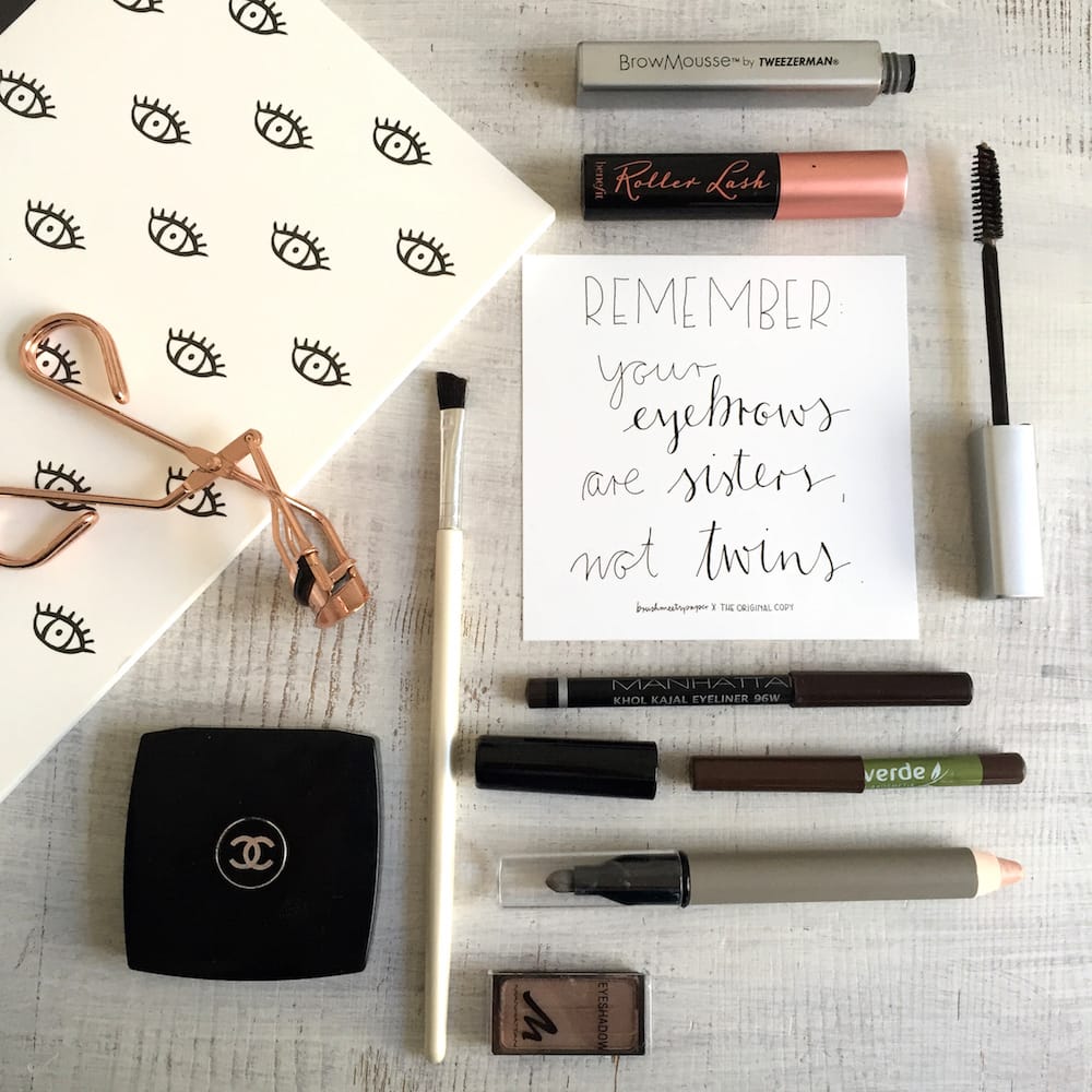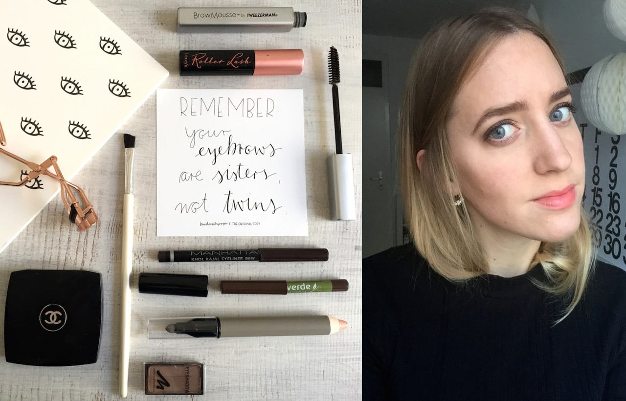 Zeit für den Rahmen des Gesichts, die Augenbrauen. Hier trage ich mit einem Pinsel einen dunkelbraunen Chanel Eyeshadow auf, der noch aus der Jugend meiner Mami stammt. Das Eyeshadow-Duo war wohl nicht sonderlich beliebt bei ihr – umso besser für mich. Umfunktioniert als Augenbrauen-Farbe funktioniert es nämlich großartig. Das matte Braun ist unheimlich hoch pigmentiert, sodass es sicherlich noch ein paar Jährchen an meiner Seite seit wird.