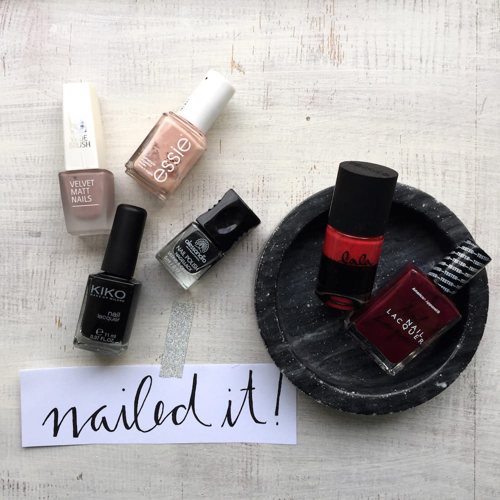 Mächtig viel Nude, Schwarz oder Rot. Am allerliebsten mag ich nudefarbene Nägel – Essie Spin the Bottle (ca. 9 €) und Isa Dora „Soft Skin“ (820) können echt viel. Das beste Basic-Rot ist für mich der Lack aus der Kollaboration von Lala Berlin für Catrice in der Farbe Ruby Red (über Ebay ca. 6 €). Dafür dass ich davon nicht gleich 10 Fläschchen gekauft habe, könnte ich mich jetzt noch hauen.