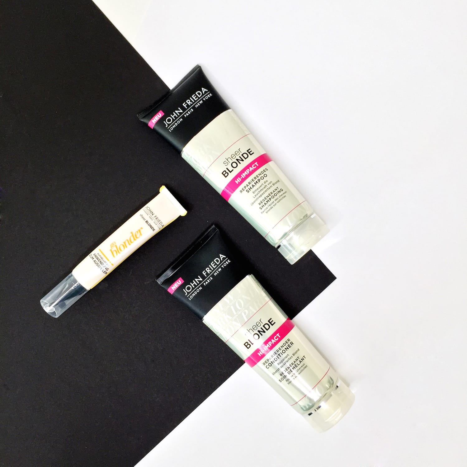 Ihr wollt auch eure blond-brünette Freundschaft zelebrieren? Könnt ihr haben. Denn ab sofort gibt es für alle blonde und brunette best friends (aka BBFs) unter euch die neuen John Frieda Produkte, die eure unterschiedlichen  Haarfarben zum Strahlen bringen:
