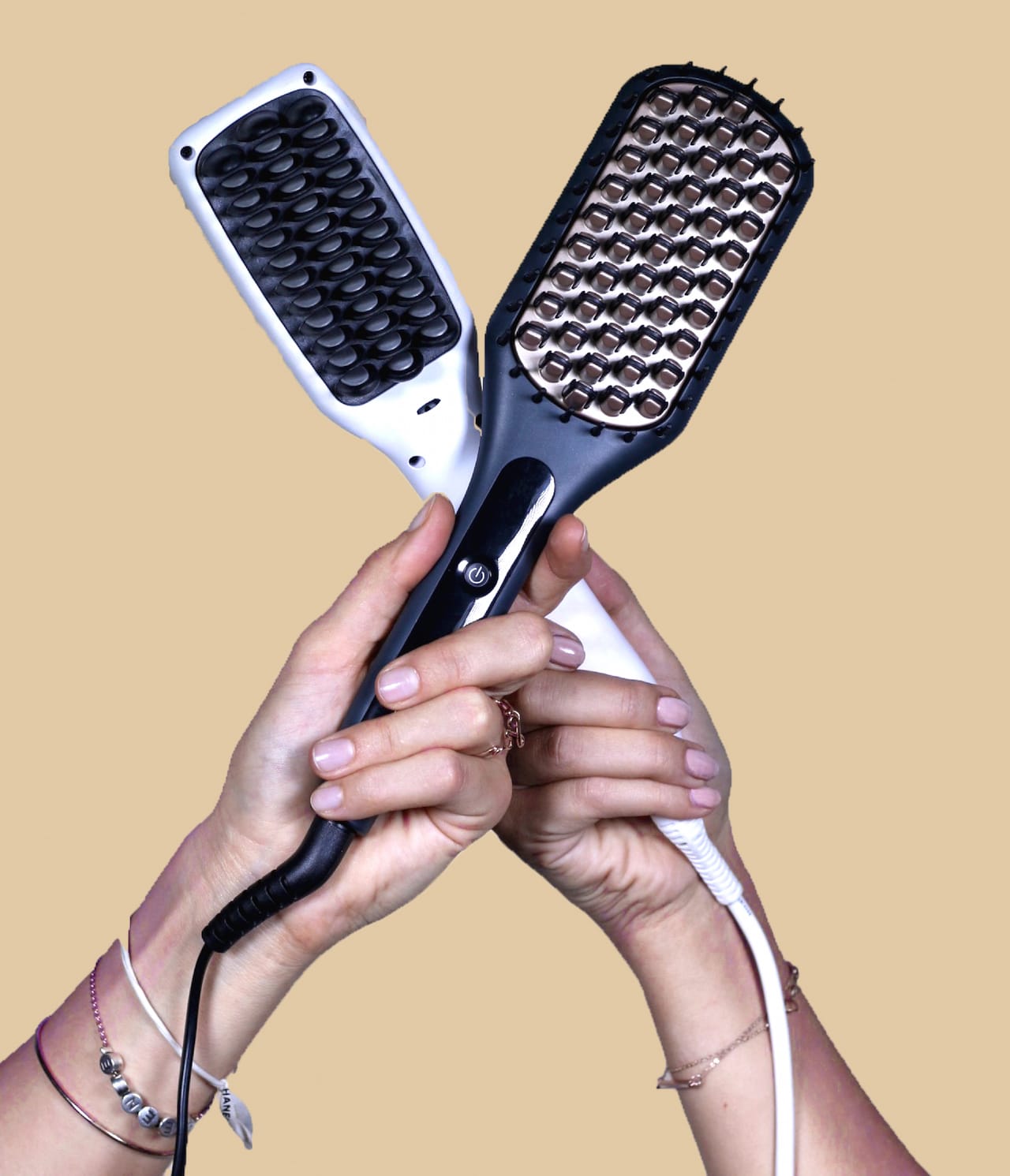 Jetzt mal ganz ehrlich – wer will denn eigentlich aktuell fatzeglatte Haare haben? Swantje und mich erinnert der X-treme Sleek-Look, den einem so manches Glätteisen verpasst, eher an traurigen Schnittlauch. Und vielleicht noch an unsere frühpubertäre Phase, als wir unsere Haarpracht mit einem auf Hochtouren laufenden Glätteeisen in Form gebracht haben – sleek hair it is! Werfen wir jedoch einen Blick auf die aktuellen Runways und unseren Fashionista-Freundeskreis, wird relativ schnell klar: leider ist der fatzeglatte Haar-Style gerade nicht das Must-Have der Saison, nach dem wir Beautyjunkies gerade gieren. Viel mehr wollen alle ihre Haare super schön natürlich und nicht zu gemacht. Ein solches Finish leisten die neuen Hitze-Glättbürsten, von denen wir zwei der heißesten Modelle für euch getestet haben. The battle is on!