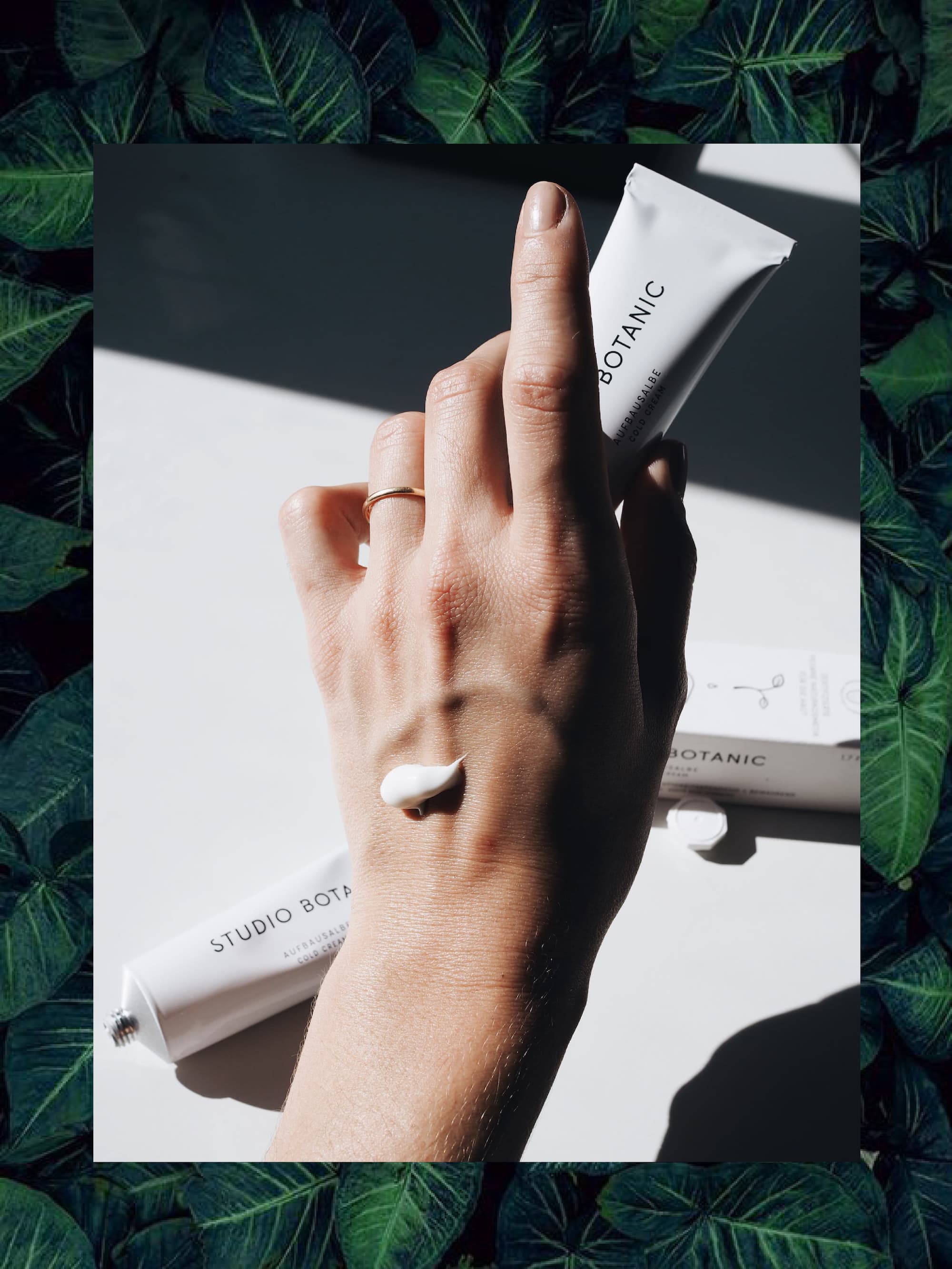 Während man in Cold Creams früher oft ’nur‘ Wasser, Bienenwachs, Olivenöl und Rosenblütenextrakt gefunden hat, so finden sich in der modernen, veganen Interpretation von Studio Botanic on top noch vegane Wachse, Glycerin, Sheabutter und Avocado- und Pfefferminzöl.