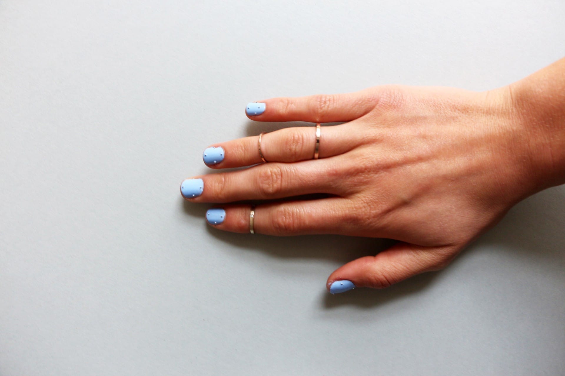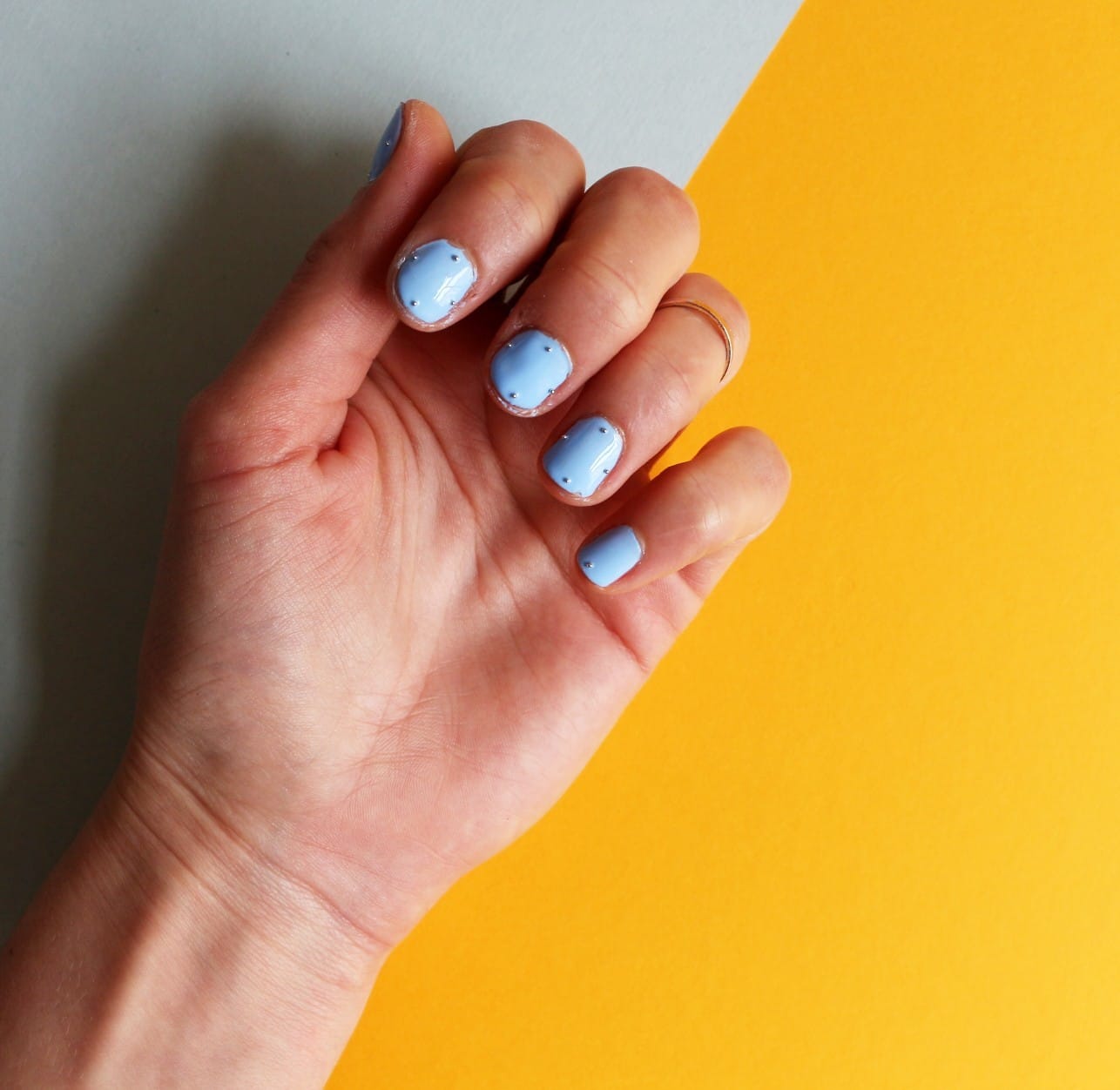 Nailart is ja generell so ne zwiespältige Sache, wie ich finde. Einerseits sehen manche Designs und Muster wirklich gut aus, auf der anderen Seite sind sie kaum nachlackierbar (gibt’s das Wort?), teilweiße auch super Kitsch und sehen schnell nach Möchtegern-Nailartist aus. Der Versuch das ein oder andere Design nachzuahmen ist schon oft mit wütendem Ablackieren und schlechter Laune geendet. Und das will ich weder mir noch irgendjemand anderem antun. Als ich aber das hübsche Mini-Nieten Design von So Hot Right Nail gesehen habe, musste ich meine 7 Nailart-Sachen zusammensuchen und es einfach ausprobieren. Und so ist folgendes Mini-Tutorial entstanden.https://www.instagram.com/p/1yU65aO5n7/