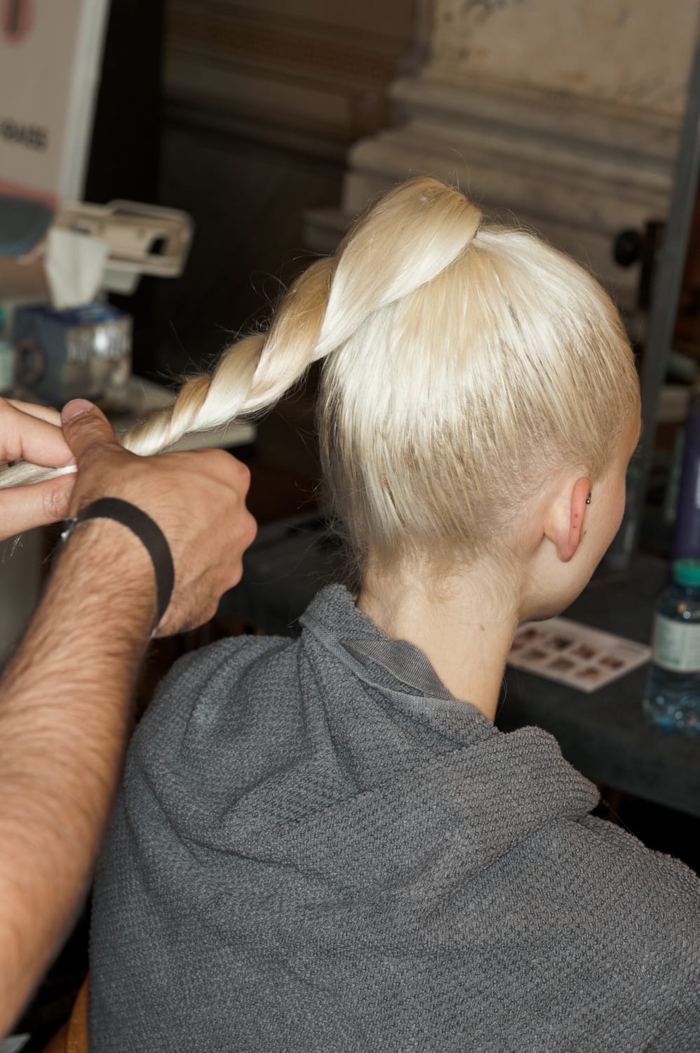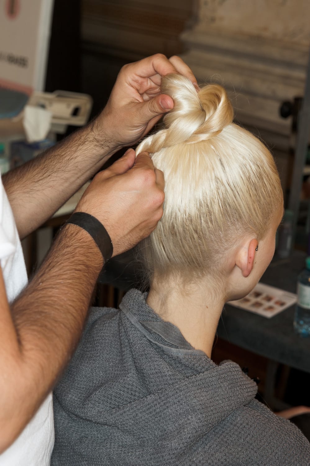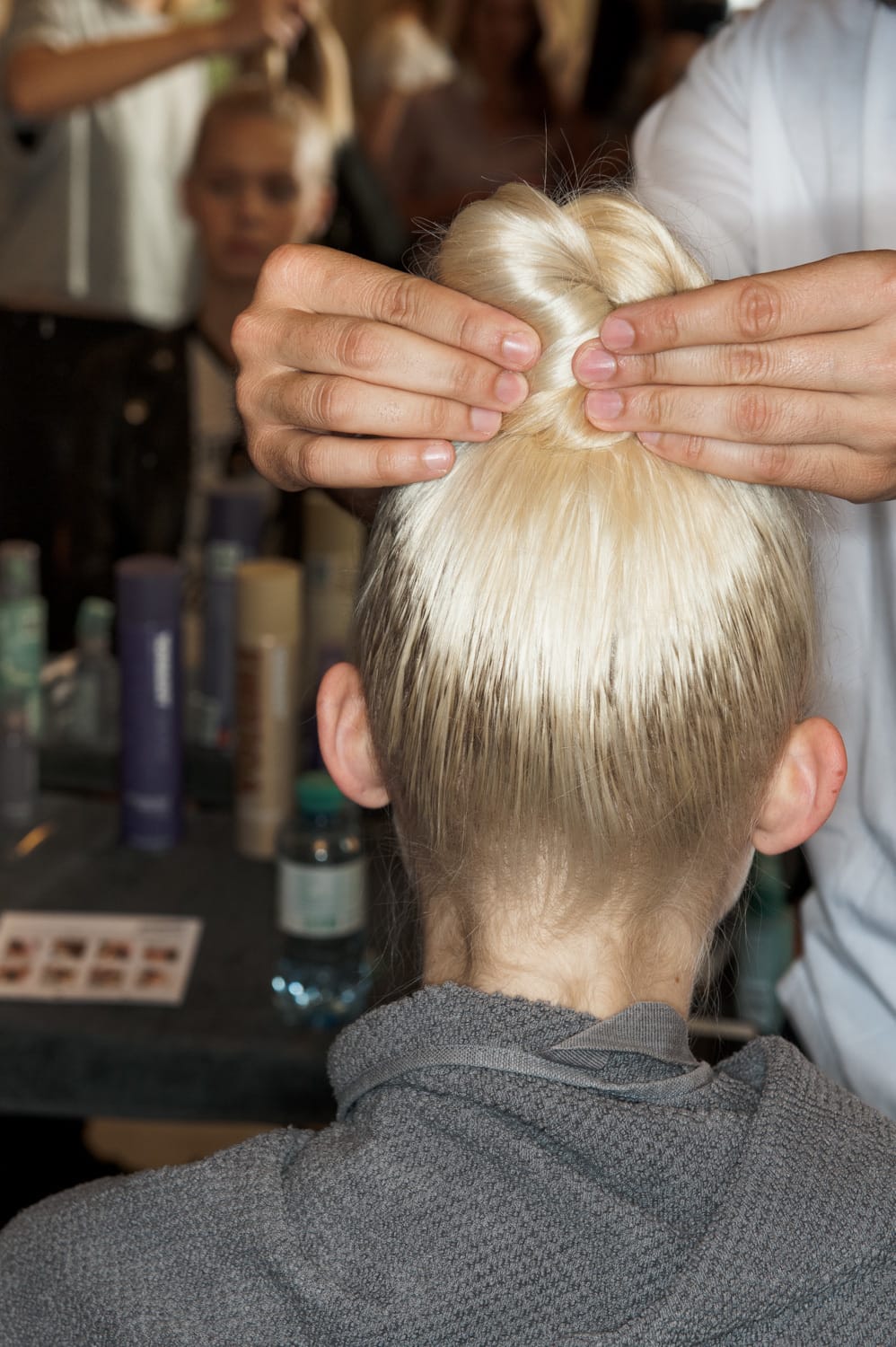 Mit dem CHOLA BUN kommen die derben Streetstyles der mexikanischen Mädchen-Gangs aus Kalifornien nach Berlin. Der Runway-Look wertet den Streetstyle auf und macht ihn femininer und softer durch angedeutetes Babyhaar – sanfte Strähnen, die das Gesicht umspielen. Im Zentrum steht dabei das Spiel mit den Strukturen. Das Sea Salt Spray verleiht ausreichend Griffigkeit und matte Textur als Basis für den Look. Mit dem Spray Wax werden glänzende Elemente ins Haar eingearbeitet und Strähnen definiert, die mit dem Casual Haarspray fixiert werden. Ein zweiter Haar-Look komplettiert die Kollektionspräsentation: Ein klassischer, sleeker Beach-Look, der CLASSIC VENICE.