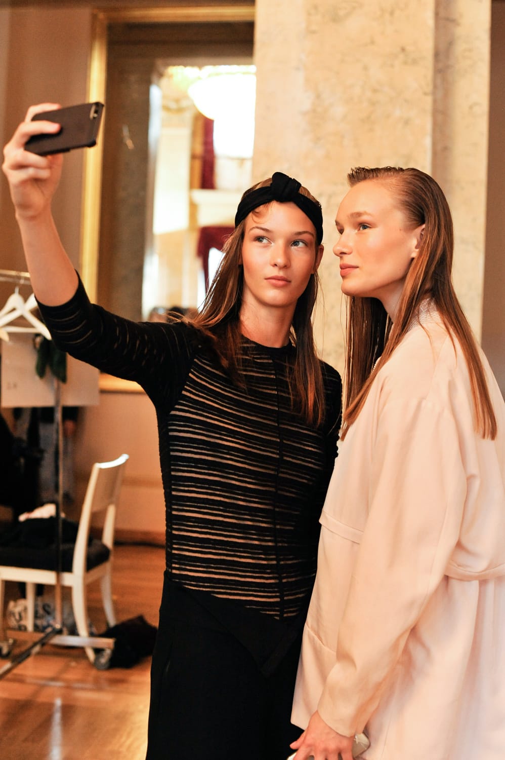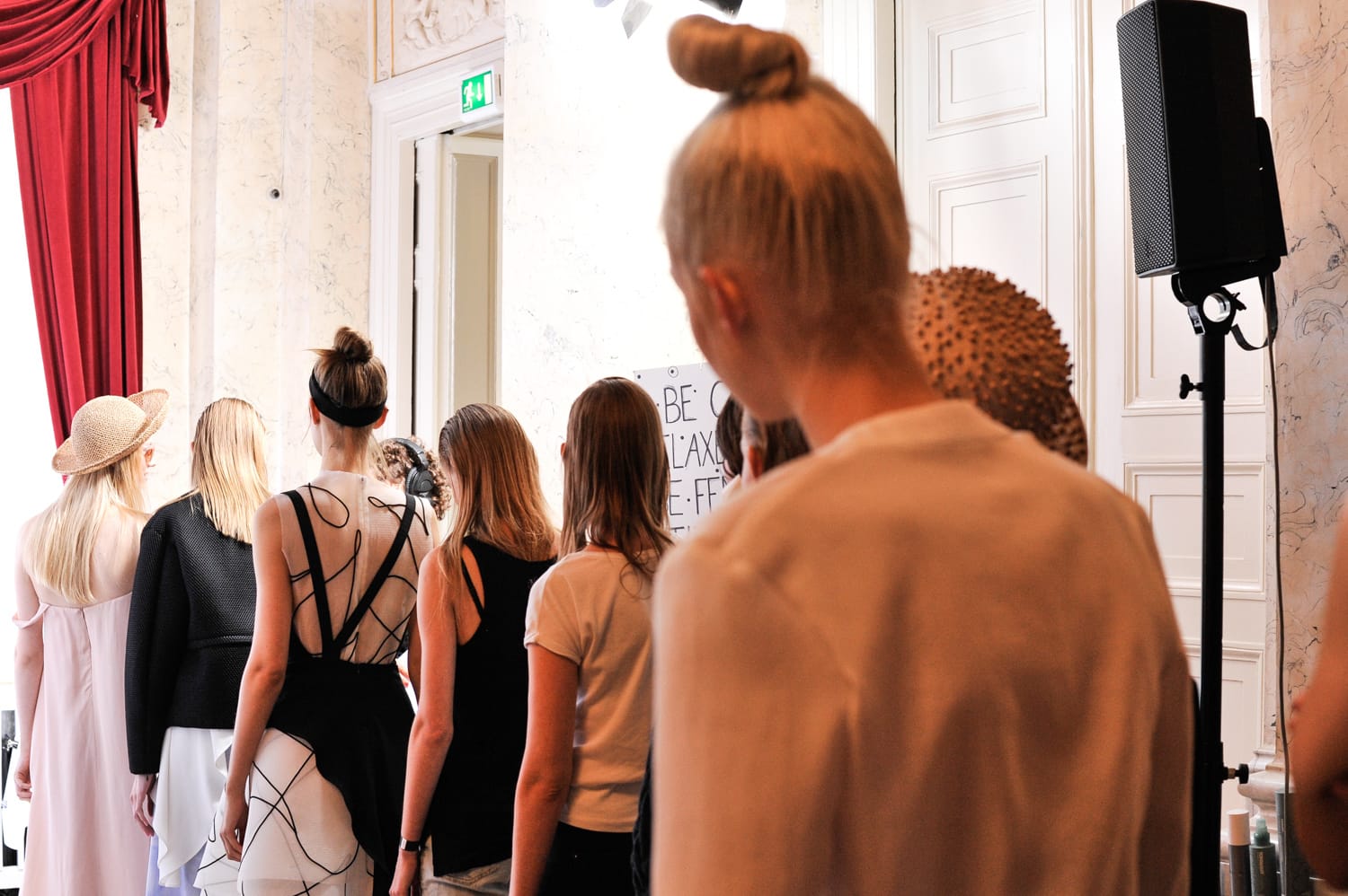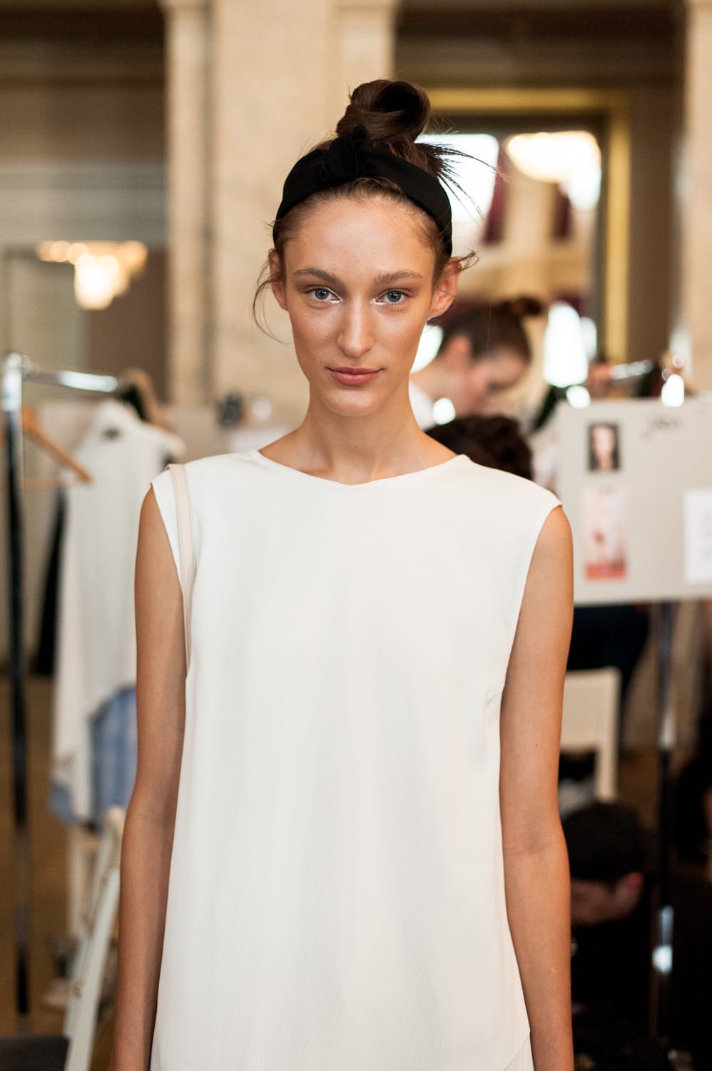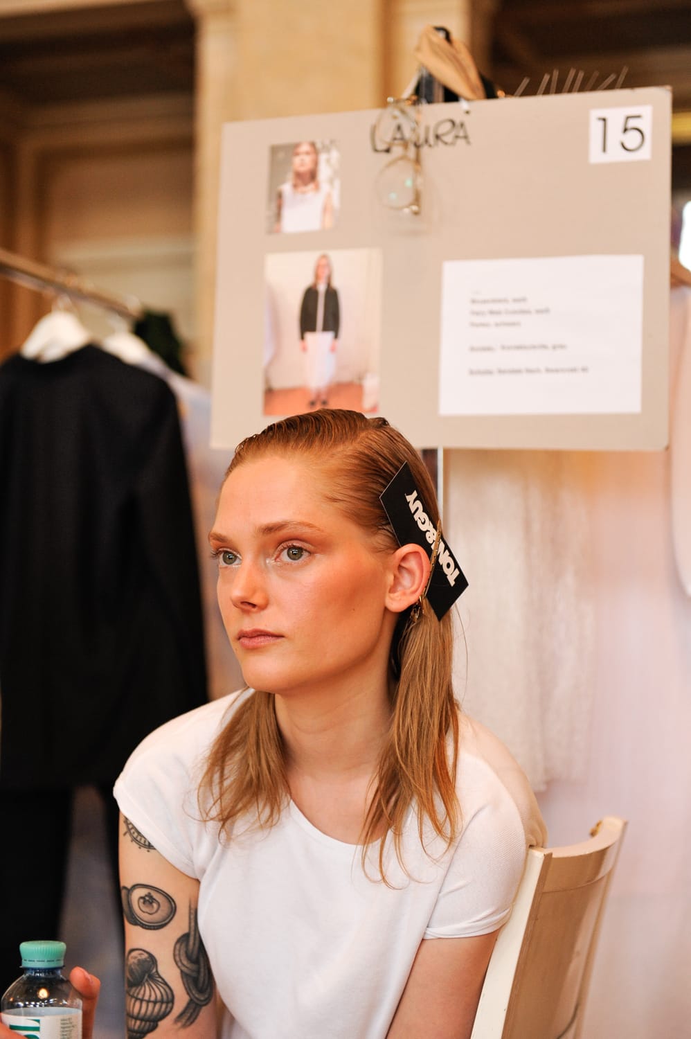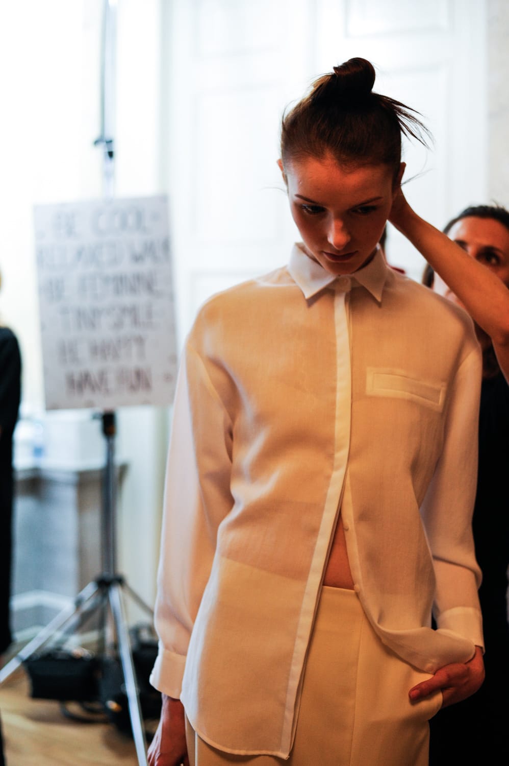 Wie in der Saison Herbst/Winter 2015 ist es ein Casual Look – passend zur MALAIKARAISS-Frau. Diesmal allerdings mit einer rougheren Komponente. Die Inspiration dahinter ist der Look kalifornischen Mädchengangs, die nach außen stark wirken wollen. Das „Babyhaar“ das das Gesicht umspielt, gibt die softe Note.