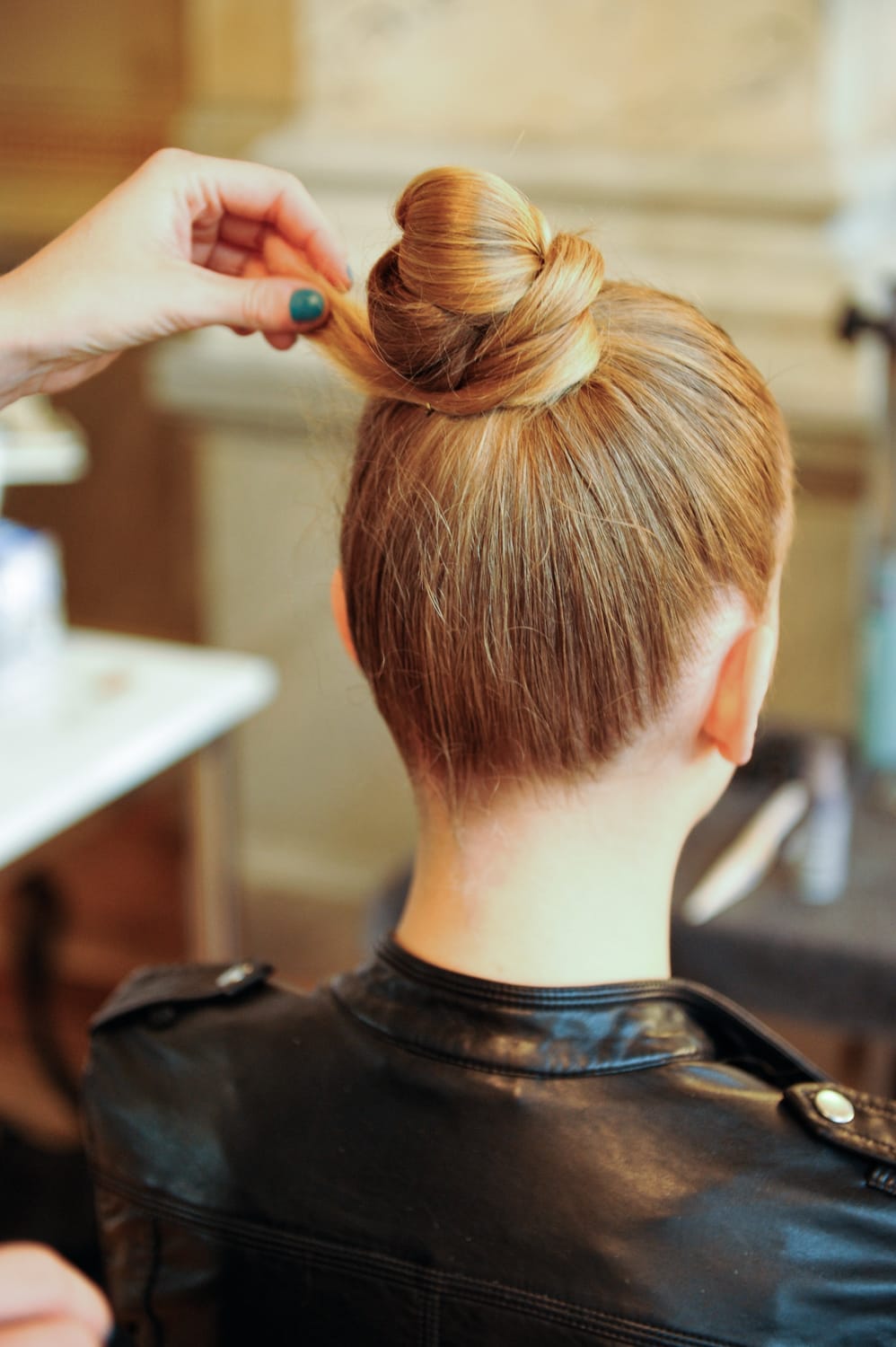 4. Zu einem Dutt feststecken. Dabei die Spitzen nicht mit eindrehen.