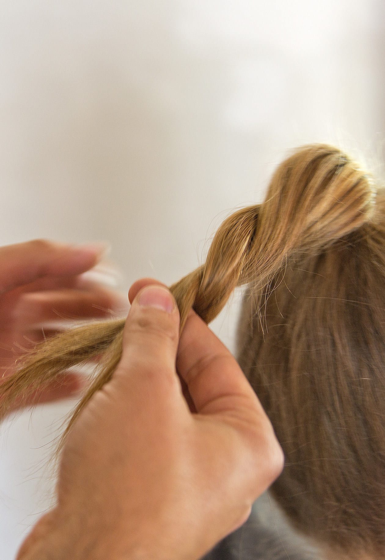 3. Das Haar in zwei Stränge teilen und umeinander wickeln.