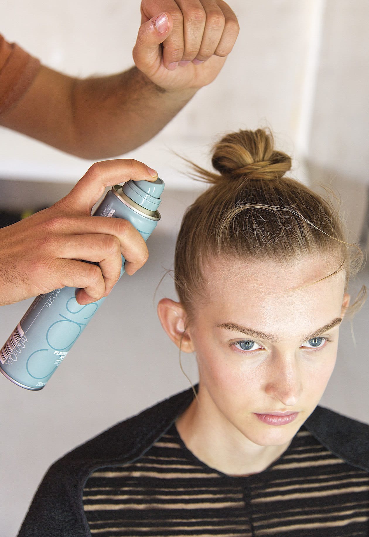 6. Das „Flexible Hold Hairspray“ auf die Finger sprühen und einzelne Strähnen rauszupfen. Zum Schluss mit Haarspray fixieren.