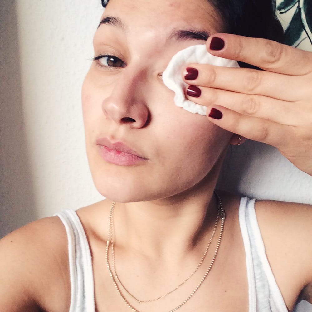 Nach dem Aufstehen wasche ich mir erst mal das Gesicht mit warmem Wasser und einem leichten Cleanser zum Wachwerden (zur Zeit benutze ich den Ultra Facial Cleanser von Kiehl‘s, ab 9,50€), kurz abtrocknen und dann packe ich mir eine schöne Maske aufs Gesicht.