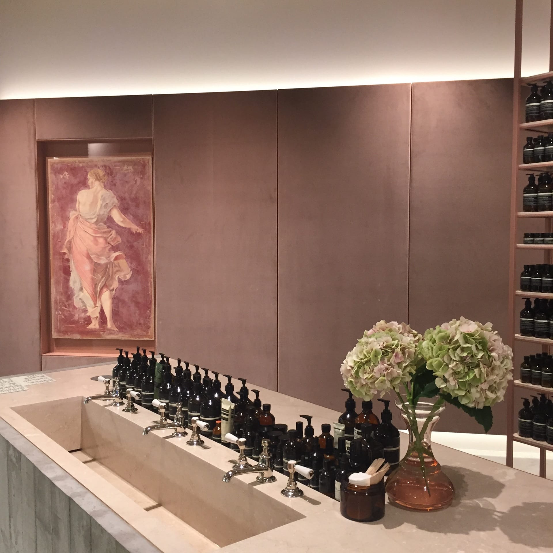 Na eeeendlich! Aesop scheint, alle Münchner Mädchenträume erhört zu haben und eröffnete letzte Woche seinen ersten Store in München. Der besticht auf Anhieb mit supercoolem Interiour (wie immer also): softrosa Samtschränke, Sichtbeton und die immer stylischen Aesop-Produkte, die in Reih und Glied auf wunderhübschen Regalen glänzen. Puh, so viel Schönheit muss das Beautyauge auch erstmal verkraften. Und damit auch ihr – wo auch immer ihr seid – in den Genuss dieses schönen Beautystores gelangt, kommen hier die ersten Eindrücke des Stores und alle wichtigen Infos.