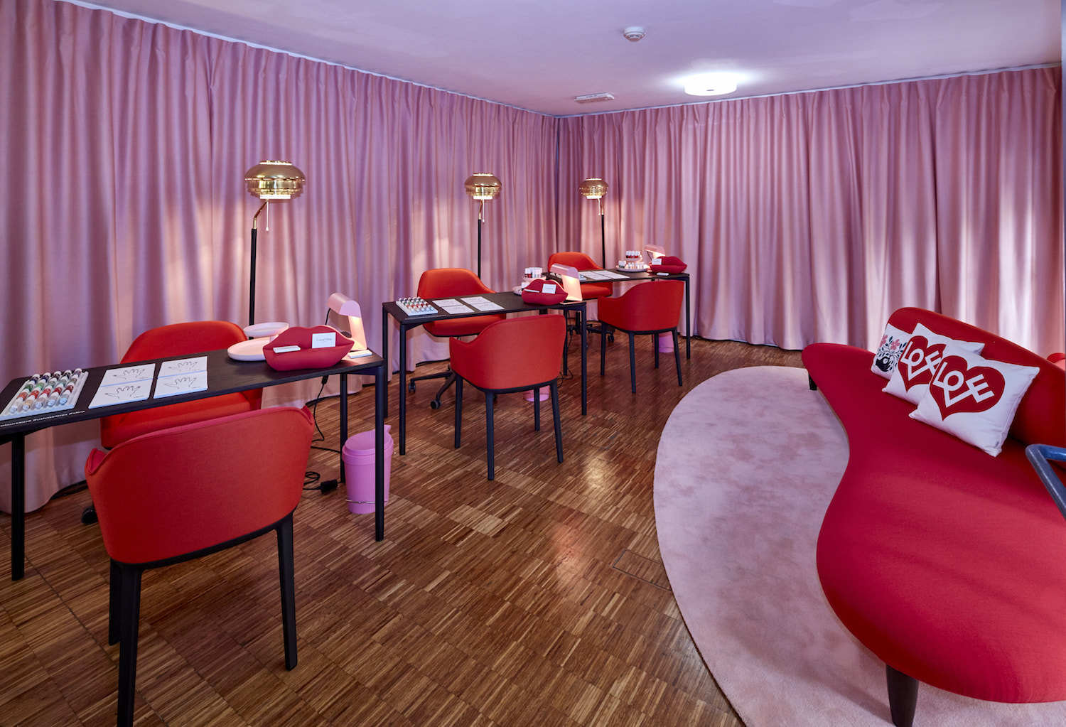 Und das natürlich nicht mit irgendwelchen Lacken, sondern mit einer Sonderkollektion. Gemeinsam haben Feride und Hella 20 limitierte Nagellacke designt, passend zu den vier ausgestellten Farbgruppen. Diese Nagellacke können während der Design Messe in der CasaVitra ausprobiert und gekauft werden. Ein exklusives Sammlerstück für Vitra-Liebhaber, da die Nagellacke stark limitiert sind!