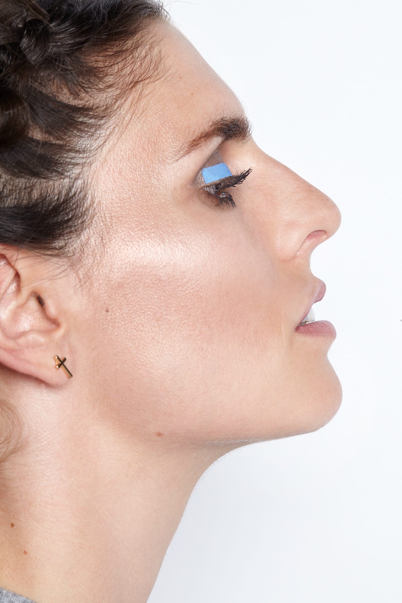 Erst vor kurzem zeigte mal wieder ein Designer, dass Lidstriche nicht immer mit Kajalstiften und Lidschatten gezogen werden müssen. Es war Hien Le, der die Fashion Week Modemeute in Berlin und mich zuhause mit seinen blau-grünen Lidstrich-Kombinationen aus Stoff begeistert hat. Doch auch er hatte natürlich ein Vorbild. Und zwar Dior. Auf dem letzten Spring-Runway klebte Starvisagist Peter Philips den Models nämlich lasergeschnittene Stoff-Linien in Pastell-Tönen auf, die zum Eyecatcher avancierten. Genug Anlass also, mich dieser „Sache“ anzunehmen und drei Lidstriche aus Stoff zu probieren: blau im Color-Blocking-Stil mit seichtem grau-metallic, peach als filigrane Linie und weiß als winged Eyeliner.