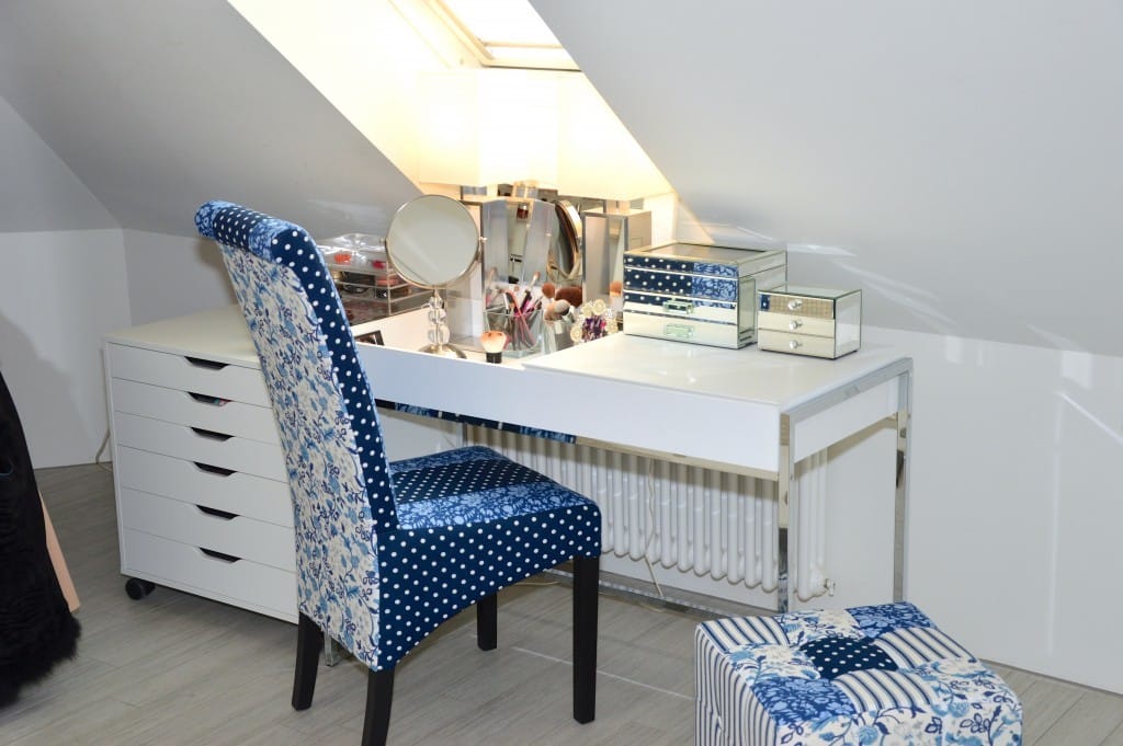 Meine langen Haare sind mir enorm wichtig und ich bin froh, dass sie recht unkompliziert und kräftig sind. Hier wechsle ich immer mal wieder die Produkte, aber ein paar meiner Favoriten sind zum Beispiel die Technician Color Care Linie von FREDERIC FEKKAI. Insbesondere die Maske ist Gold wert. Bei Shampoos mag ich aktuell zum Beispiel das LEONOR GREYL Shampoo für ölige Kopfhaut und trockene Spitzen sehr gern, was ich kürzlich über meinen Friseur Pedro Sanchez in Zürich entdeckt habe. Ich versuche, sie alle 2 bis 3 Tage zu waschen, nicht öfter. Nach dem Waschen benutze ich oft das Surf Spray von BUMBLE&BUMBLE in den Längen. Das trocknet die Spitzen nicht aus, macht sie aber griffiger und somit voluminöser. Falls ich meinen Lockenstab benutze, verzichte ich nie auf mein Hitzespray von TreSemmé. Und wenn es mal nicht zum Haarewaschen reicht – das Trockenshampoo von KÉRASTASE ist immer eine gute Notlösung. Das benutze ich auch, bevor ich meine Haare hochstecke – so halten sie besser.