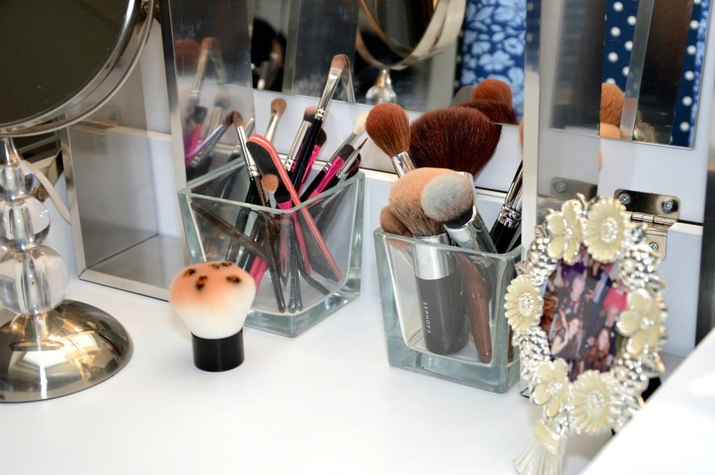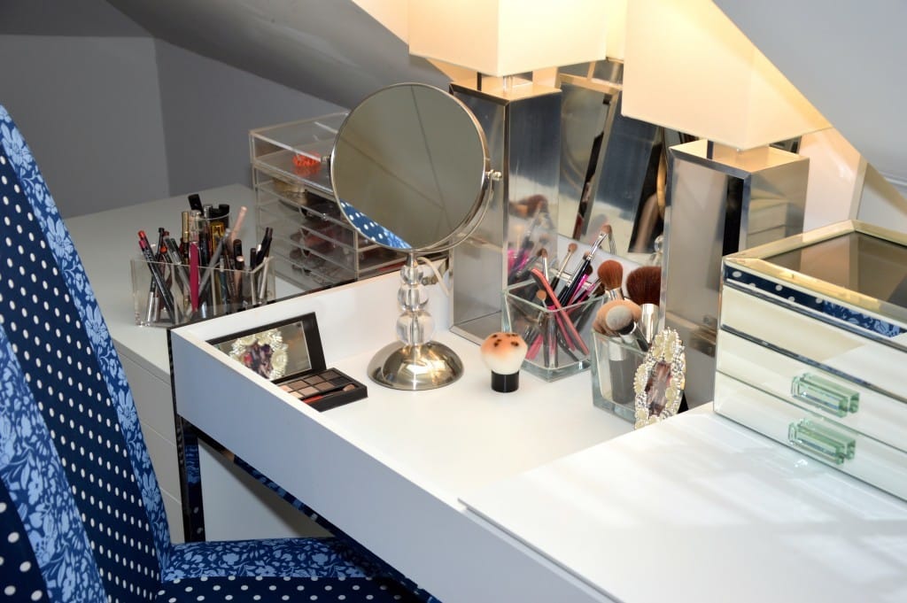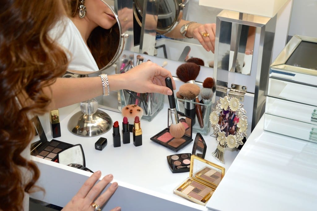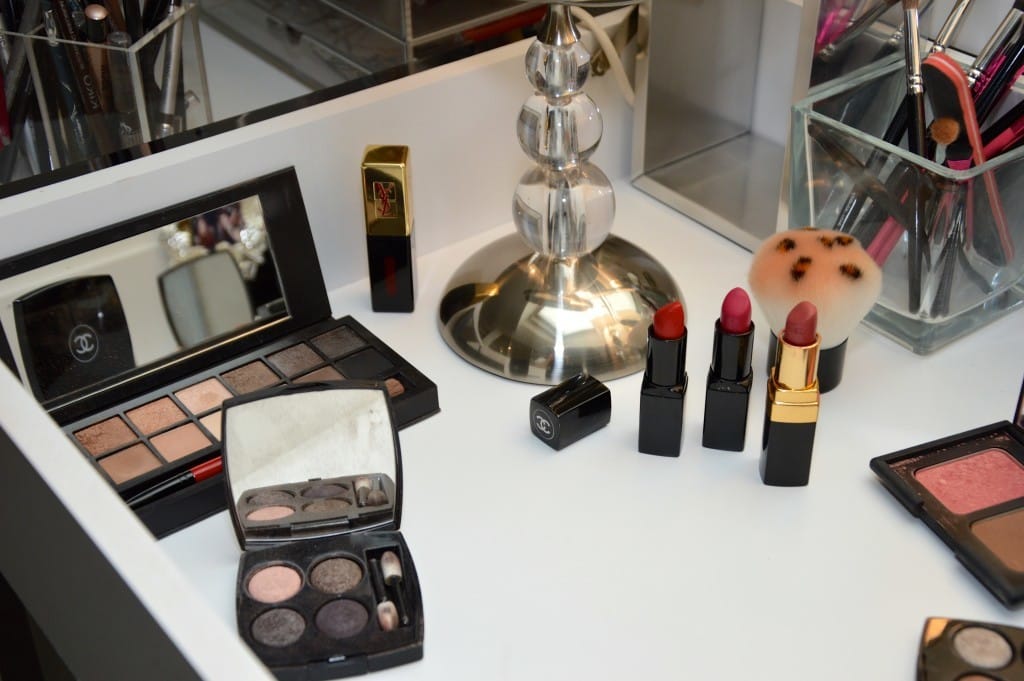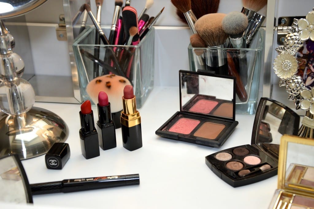 Mein typischer Look besteht aus Bronzing Puder (Too Faced Chocolate Soleil) und betonten Smoky Eyes in Brauntönen (SMASHBOX Full Exposure Palette) mit Volumenmascara (BENEFIT They’re Real). Im Prinzip schminke ich mich fast immer gleich, für abends schminke ich mich einfach etwas kräftiger, benutze dunkleren Lidschatten und nehme schwarzen Eyeliner (auch von BENEFIT They’re Real) statt braunen Kajal (CLINIQUE Quickliner). Ich verblende sowohl Rouge (CHANEL Le Blush) als auch Lidschatten möglichst so weich, dass keine harten Linien und Kanten entstehen. Für mich ist es weniger wichtig neue Trends auszuprobieren als dass das Makeup die Vorzüge im Gesicht hervorhebt und kleine Makel kaschiert. So etwas ist zeitlos. Abgesehen von Lipgloss (am liebsten SOAP & GLORY Sexy Motherpucker in Yummy Plum) mag ich hin und wieder auch betonte, satte Lippen – hier steht mir ein dunkles und mattes Fuchsia allerdings besser als das klassische Rot (ich liebe den Velvet Matte Lipstick Pencil von NARS in vielen Farben, oder einfach nur Lipliner). Außerdem machen Lippenstifte mit Blaustich die Zähne optisch weißer! Meine Augenbrauen habe ich mir vor ein paar Monaten endlich mit Permanent Makeup schattieren lassen und bin total zufrieden mit dem Ergebnis. Aufgrund einer Narbe waren sie nicht ganz symmetrisch, aber jetzt sind sie immer perfekt in Form. So fällt auch das Nachzupfen viel leichter, und im Sommerurlaub fühle ich mich ungeschminkt mit ein wenig Concealer (BENEFIT Boi-ing) und wasserfester Mascara pudelwohl. Augenbrauen geben dem Gesicht einen Rahmen, also sind sie für mich sehr wichtig. Mein Step-by-Step Makeup Tutorial findet ihr hier.
