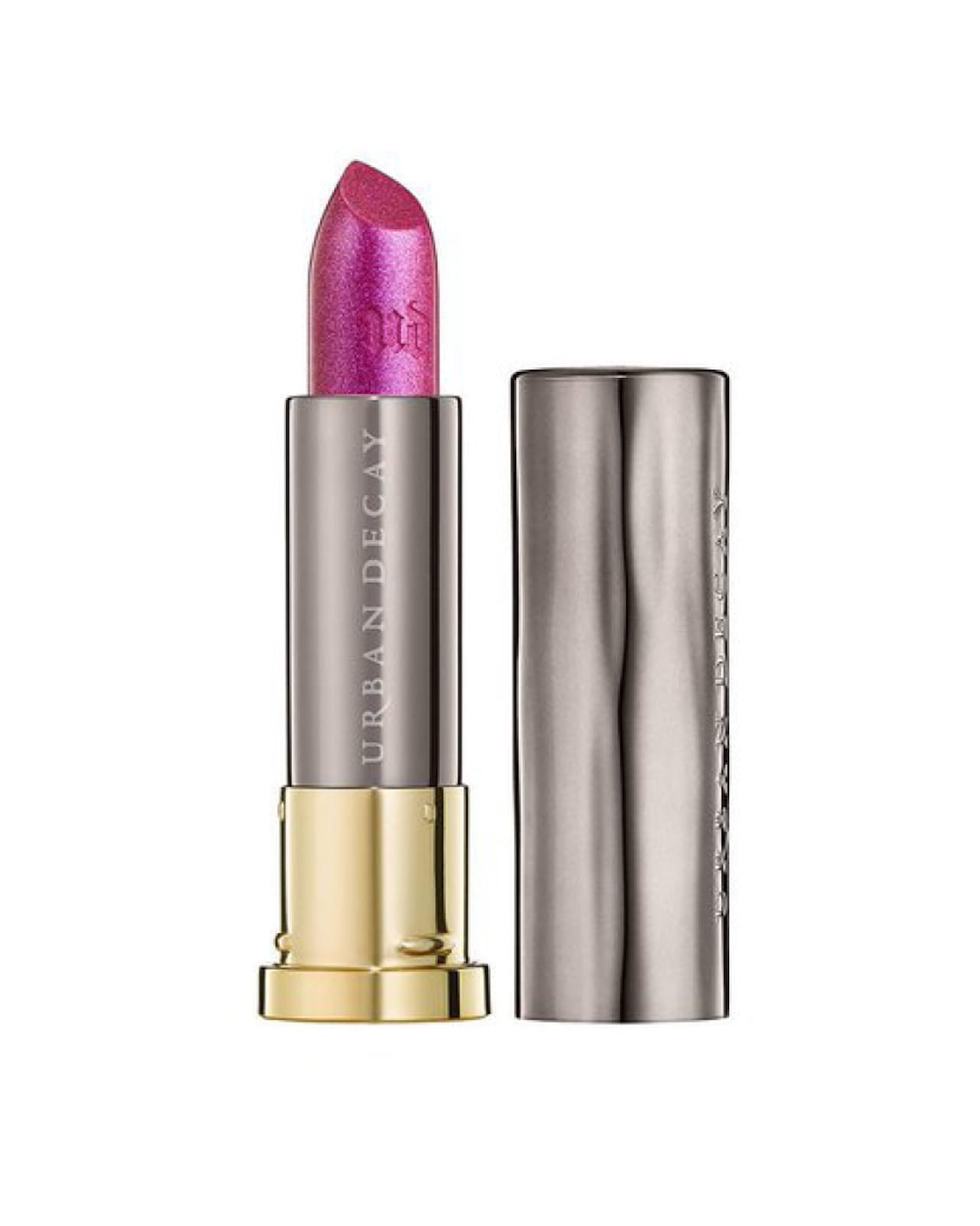 VICE Lipstick von UD ist auf den ersten Blick an seinem Design zu erkennen – und wirkt jetzt im neuen Look noch begehrenswerter und luxuriöser … bleibt aber seiner Linie treu. Der in edlem Metallic-Look schimmernde Stift trägt auf dem goldglänzenden Sockel das dezent eingeprägte Marken-Logo von UD. Die in der Farbe der Nuance gehaltenen Etiketten (inkl. Finish) helfen, Ihren Lieblings-Lipstick mit sicherem Griff in der Handtasche zu finden.