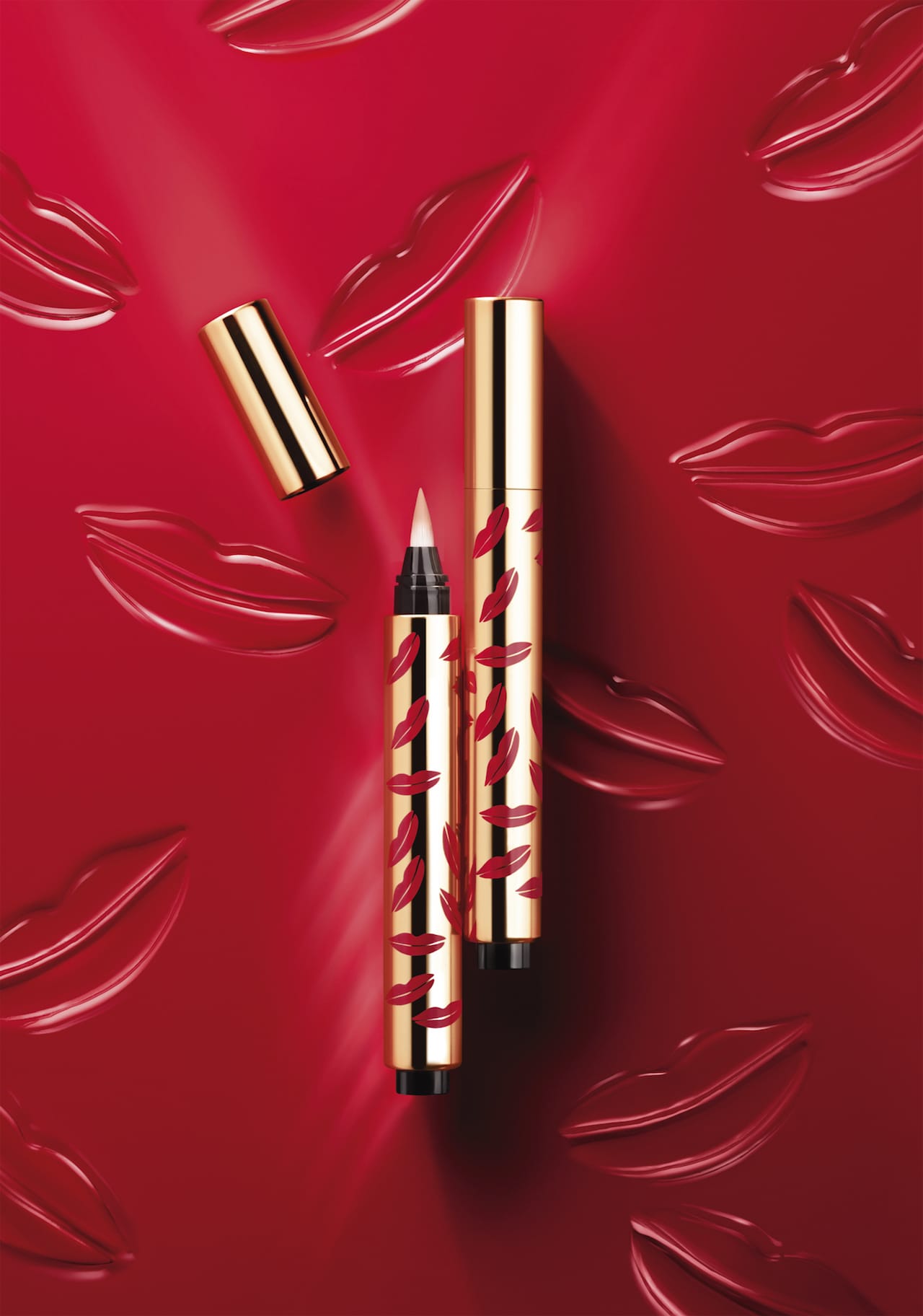 Der legendäre goldene Stift schmückt sich mit einem roten Kussmund, der die Lust auf mehr entflammt: TOUCHE ÉCLAT COLLECTOR KISS & LOVE EDITION stylt kunstvoll die Gesichtszüge und setzt sie mit einem Klick ins schönste und schmeichelhafteste Licht. Ein paar Tupfer unter die Augen, je ein Strich entlang der Nasenflügel, ein Hauch auf die T-Zone und mit den Fingerspitzen verwischen – fertig!