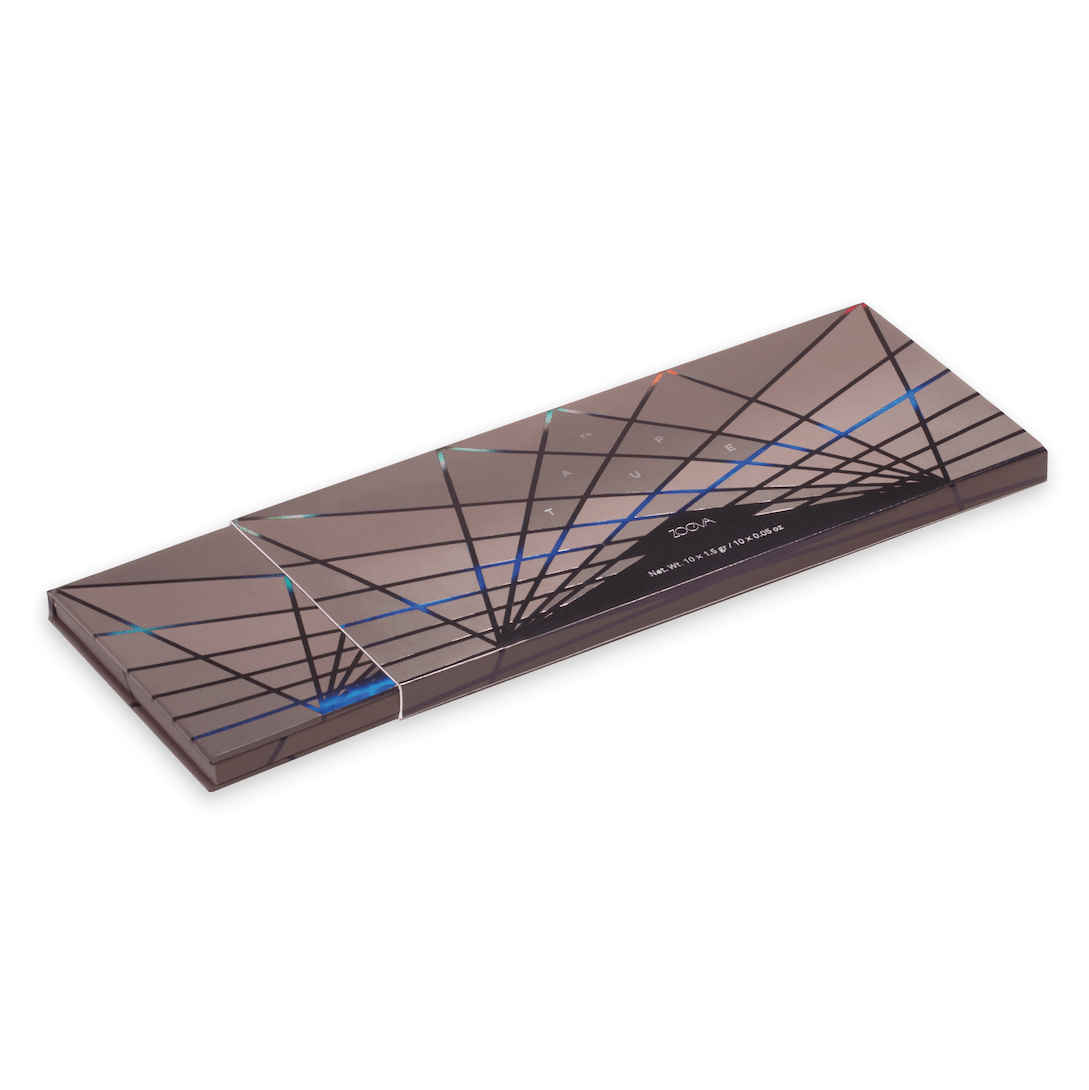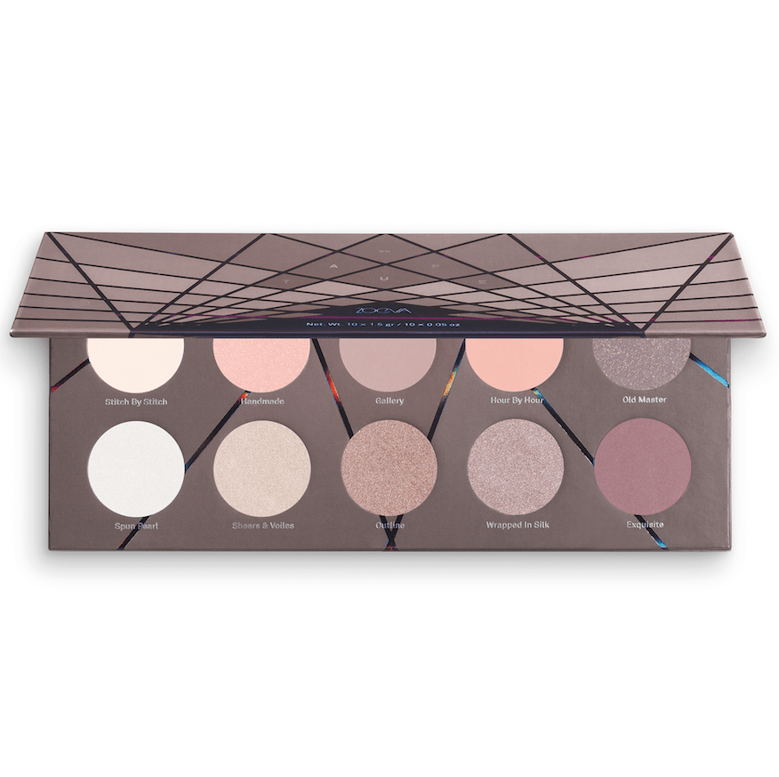 In einem auffälligen, grafischen Design wird unsere Lidschatten Palette selbst zu einem liebevoll zusammengestellten Kunstwerk. Ihre exquisiten Braun-Grau-, changierenden Beige- und violett-stichigen Gunmetal Töne sind sanft im Auftrag und lassen sich spielend leicht verblenden.