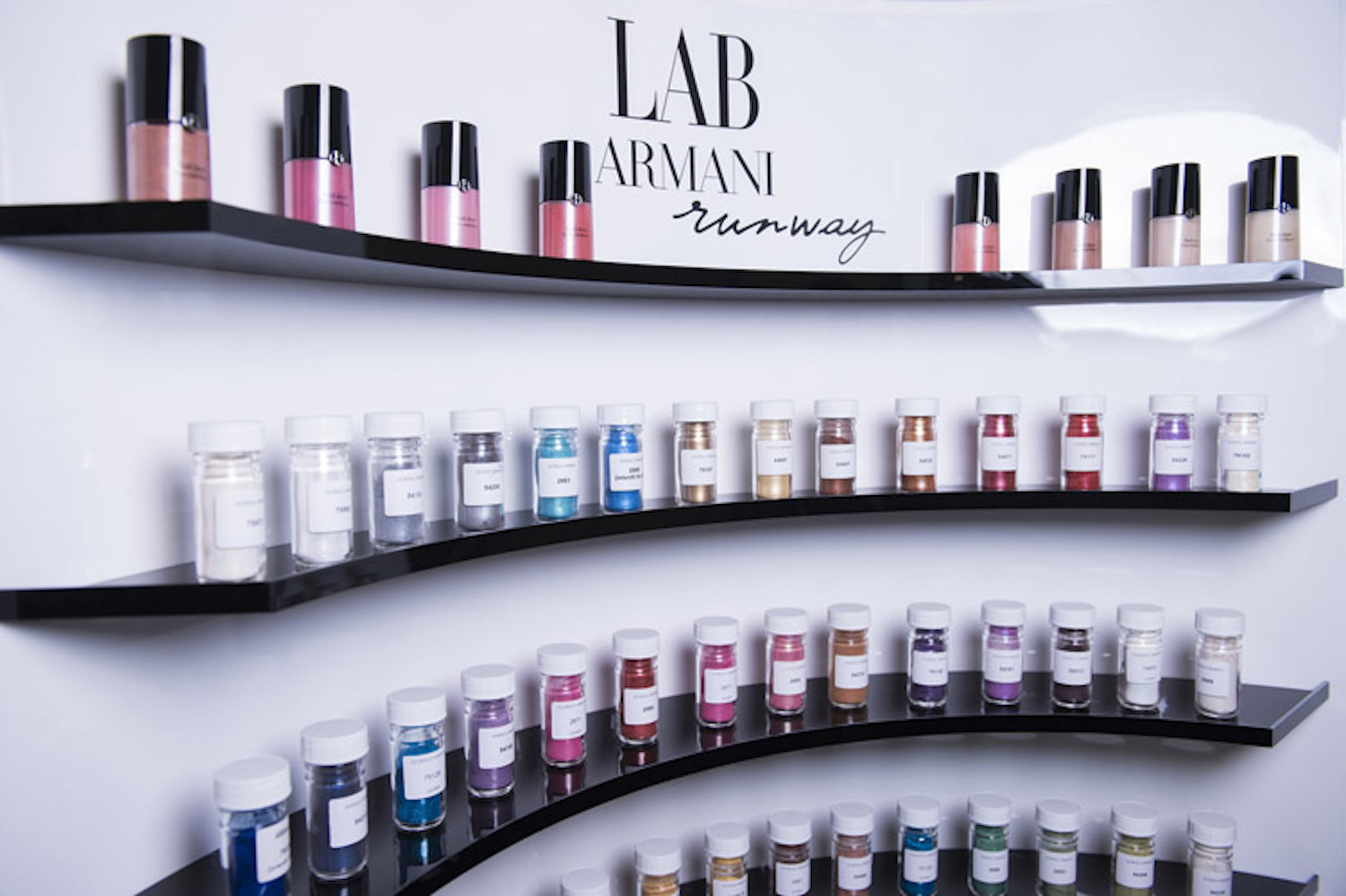 Armani Runway Lab“, das speziell für Fashion Shows entwickelte mobile Labor, ermöglicht es Linda Cantello, im Backstage Bereich spontan Texturen, Pigmente und Farben nach den Wünschen von Herrn Armani zu kreieren. In weniger als fünf Monaten werden diese exklusiven, maßgeschneiderten Produkte dann auch in Form einer limitierten Sonder-Kollektion, die sich jede Frau kaufen kann, angeboten.