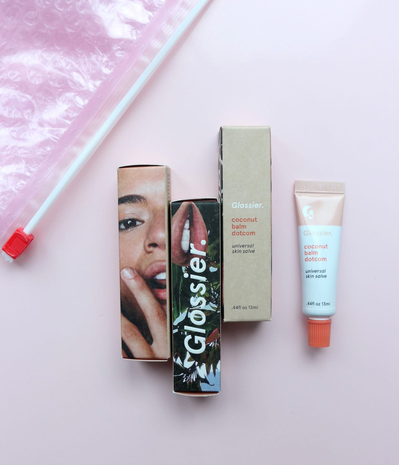 So, und nun seid ihr dran (die zweite Tüte war ja für euch bestimmt) und dürft euch vielleicht bald auch im Glossier-Glück wälzen, denn ich verlose insgesamt sechs Produkte: drei limitierte Coconut Balm Dotcoms und drei Priming Moisturizier: