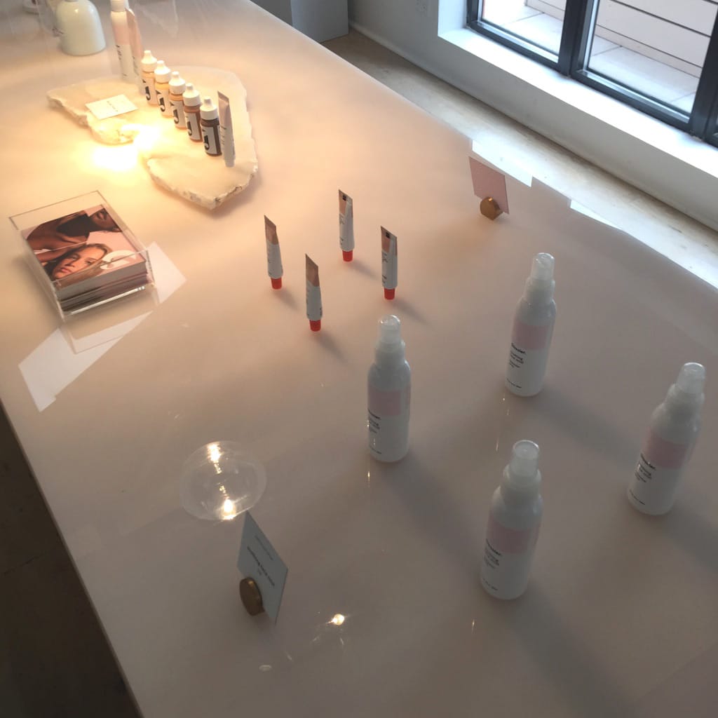 Ich bin kein großer Fan von solchen Installationen. Irgendwie denke ich mir immer: ja gut, und jetzt? Deshalb verlasse ich den Raum auch nach drei Minuten, im Gegensatz zu den anderen, die wie Glossier-trunken rumsitzen und an die Decke starren. Okay, ich muss raus hier. Schließlich will ich shoppen und die Produkte testen.
