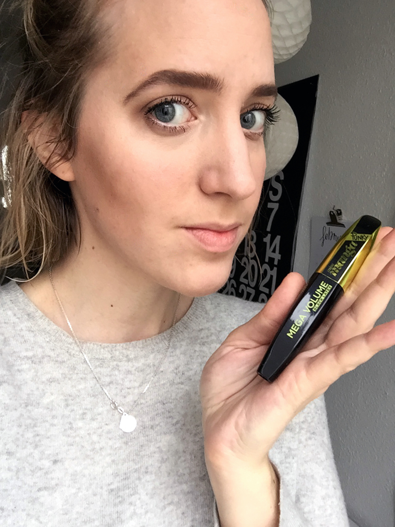 Kommen wir zum zweiten Teilnehmer, dem Mega Volume Black Latex. Hier soll der Name Programm sein, denn die Mascara sorgt laut Verpackung für mega Volumen oben und unten sowie „spiky gestylte Wimpern“. Wie schaut das in reallife aus?