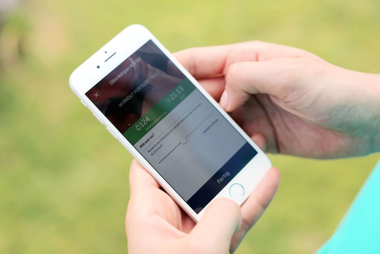 Aufgrund der hohen Hitze tagsüber, habe ich mein Training immer in die Morgenstunden gelegt. Ob vor oder nach dem Frühstück, habe ich spontan entschieden – je nach Müdigkeitsgrad und Frühstückskalorien. Grundsätzlich habe ich mir von der App aber immer ein spezielles Workout generieren lassen. Das bedeutet: ich gebe an wie viel Zeit ich habe, welchen Schwierigkeitsgrad ich gerade vertrage, welche Hilfsmittel mir zur Verfügung stehen und welchen Bereich ich trainieren möchte. Nachdem man alle Daten eingegeben und Haken gesetzt hat, zeigt einem die App eine Übersicht über alle Übungen, die nun anstehen. Warm-Up, Workout, Stretching – alles mit dabei. Einmal auf Start gedrückt und die erste Übung beginnt. Ich habe mein Handy mit meinem wireless Bluetooth Headset connected, was mir nicht nur Musik überträgt, sondern auch den 5-Sekunden-Countdown, der zum Ende der einzelnen Übungen per akustischem Signal einsetzt. Per Fortschritt-Balken am unteren Displayrand hat man auch immer gut im Blick, wie weit man innerhalb des Workouts schon vorangeschritten ist. Komischerweise hat mich das immer motiviert. Schon die Hälfte geschafft, yesss! Hat man dann aber alle Übungen absolviert, zweigt einem die App in einer Übersicht noch die verbrannten Kalorien und die zurückgelegte Trainingszeit.