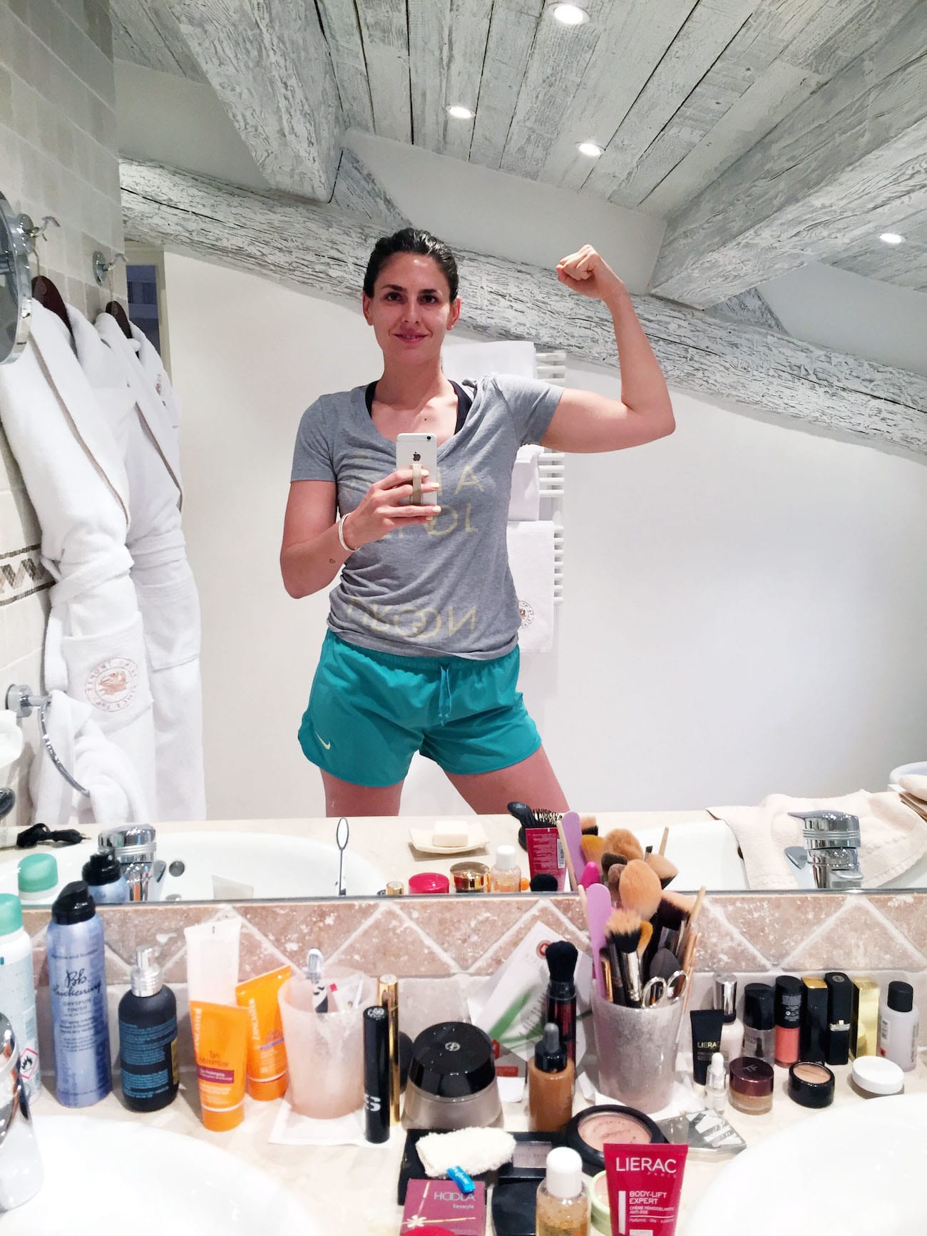 Was mich am meisten begeistert hat, war tatsächlich die überraschend hohe Motivation, die mich gepackt hat. Durch die Möglichkeit, dass man die Workouts auf die Umstände, also Zeit und Platz, einstellen kann, hatte ich täglich Bock zu trainieren. Und wenn es nur 15 Minuten Arm-Training oder 3 x 10 Squat Jumps waren, die ich morgens kurz im Hotelzimmer eingelegt habe. So hat man keinen riesigen Übungsplan, den man widerwillig vor sich herschiebt. Täglich 15 Minuten Fokustraining – das reicht auf jeden Fall aus, um unterwegs fit zu bleiben. Überrascht hat mich aber auch, wie wenig Platz man doch eigentlich braucht. Während ich mich früher immer selbst belogen habe (hier ist viiiel zu wenig Platz!), ist mir heute klar: ein kleines Eck im Hotelzimmer oder ein ruhiger Platz auf der Hotelanlage finden sich immer.