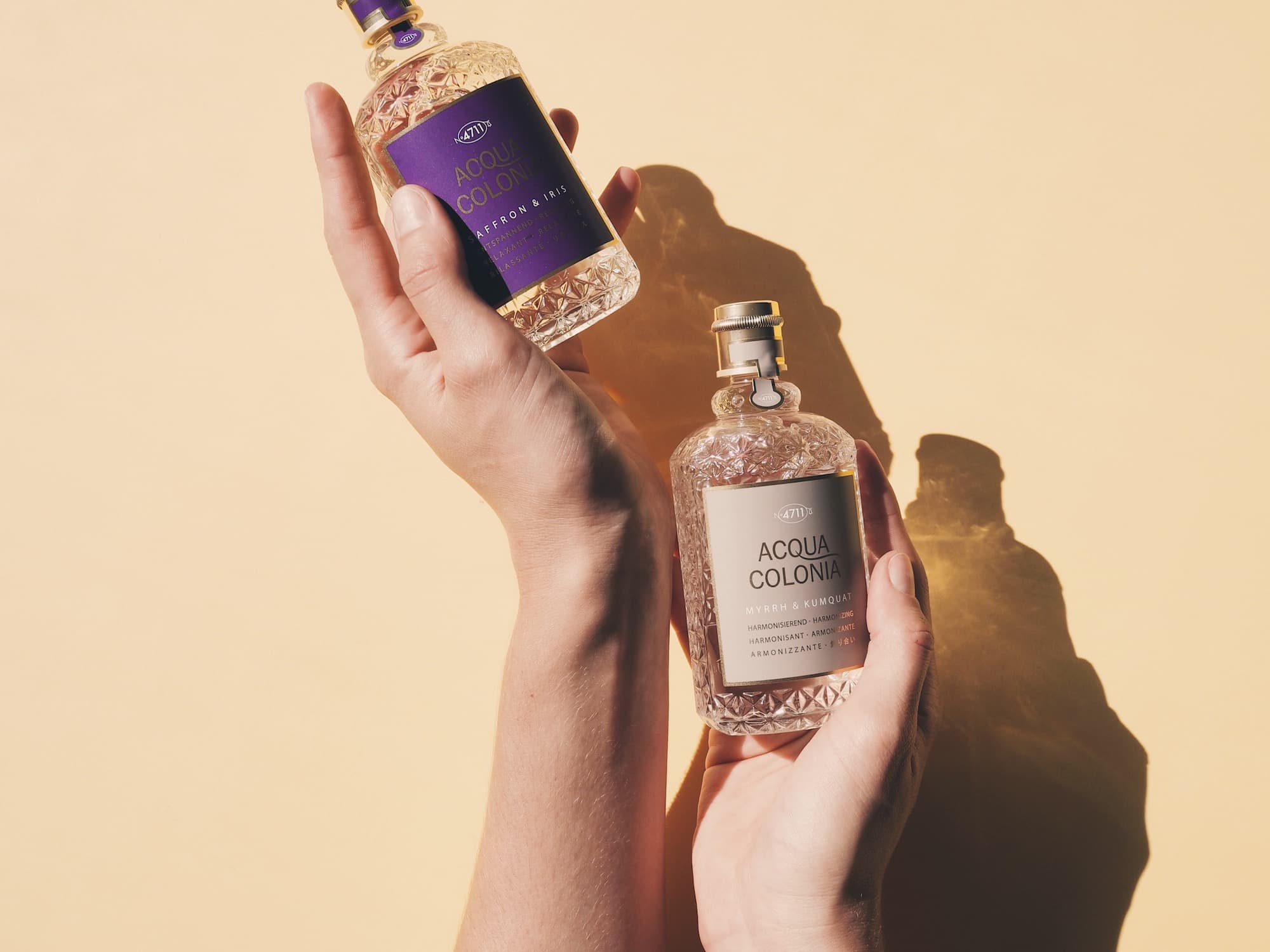 Ausgefallen, aber nicht zu aufdringlich. Soft pudrig. Und wenn’s geht nicht all zu süß und blumig. Das sind die groben Kriterien, an denen ich die Duftnoten meiner absoluten Lieblingsdüfte ausmachen kann. Der Flakon ist bei Düften in erster Linie zwar zweitrangig, aber natürlich freut es mein Auge, wenn der Duft selbst dann noch in einer hübschen Verpackung steckt. Auf den ersten Blick erfüllten die zwei neuen Acqua Colonias ‚Myrrh & Kumquat‘ und ‚Saffron & Iris‘ von 4711 das alles. Beide olfaktorischen Neuheiten stecken in einem wunderschönen, geschliffenen Glasflakon, beinhalten extravagante Inhaltsstoffe und treffen mit Bezeichnungen wie ‚entspannend‘ und ‚harmonisierend‘ genau den Punkt bei mir, der mich Produkte genauer ansehen lässt. Der gesamte Auftritt war so rund, dass er meine Aufmerksamkeit geweckt hatte und ich die zwei neuen Düfte für den Übergang vom Sommer in den Herbst für euch Probe getragen habe.