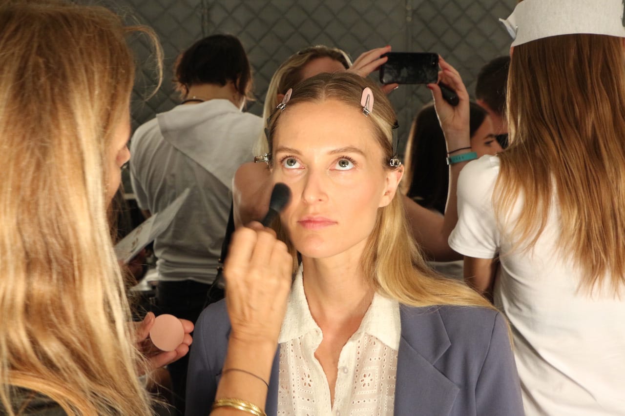 Der Backstage-Bereich bei Prabal Gurung glänzt durch Ordnung, super Organisation und wenig Hektik. Hier weiß jeder was er zu tun hat. Es sind zwar mindestens doppelt so viele Leute hier wie bei den anderen Shows, aber alles läuft viel routinierter ab. Und auch Madeline ist wieder da und steht einem Blogger nach dem anderen für ein interview zur Verfügung. Und so auch mir.