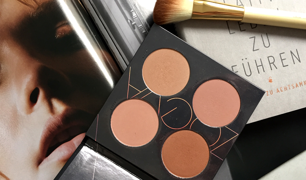 Konturen und Schatten lassen sich mit der Rouge Palette im Handumdrehen auf das fertige Make-up pinseln. So kann ich mit dem matten Braun nämlich nicht nur meine Wangenknochen optisch hervorheben und die Nase etwas schmaler zaubern, sondern mit dem schimmernden Bronzer auch einen Hauch Sommer in mein Gesicht tricksen. Dafür verwende ich den dunkelsten Ton und verteile ihn ganz leicht auf dem obersten Punkt der Wangen und verblende die Farbe großzügig bis zum Haaransatz. Mit dem helle Rosé gibt es noch etwas Frische auf die Bäckchen und fertig ist mein natürlicher Contouring-Look delight.