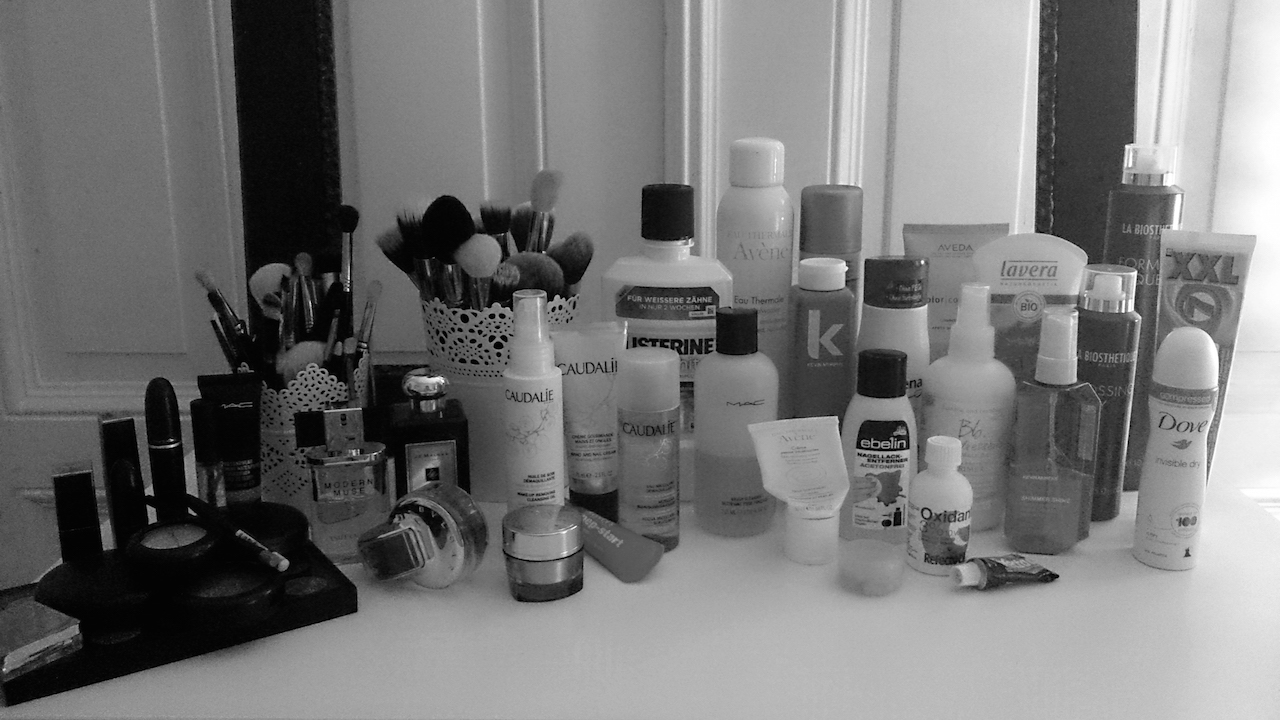 Noch ein Absatz, dann ein Blick in die Make-up Schublade. Duschen, peelen, cremen, einsprühen, föhnen und noch mal schmieren, sobald ich diesen Text fertig habe. Wie bei so vielen Dingen und so oft im Leben frage ich mich: Wie viel ist zu viel des Guten? Bin ich mir der Mengen bewusst, die ich tagtäglich konsumiere? Habe ich einen Überblick über die Werte, die sich in meinen Kommoden, Bademanteltaschen, Aufbewahrungsboxen summieren? Will ich ehrlich sein, muss ich diese Fragen mit ‚nein‘ beantworten. Die Erkenntnis ein wenig die Kontrolle verloren zu haben ist sicherlich ein gutes Zeichen.