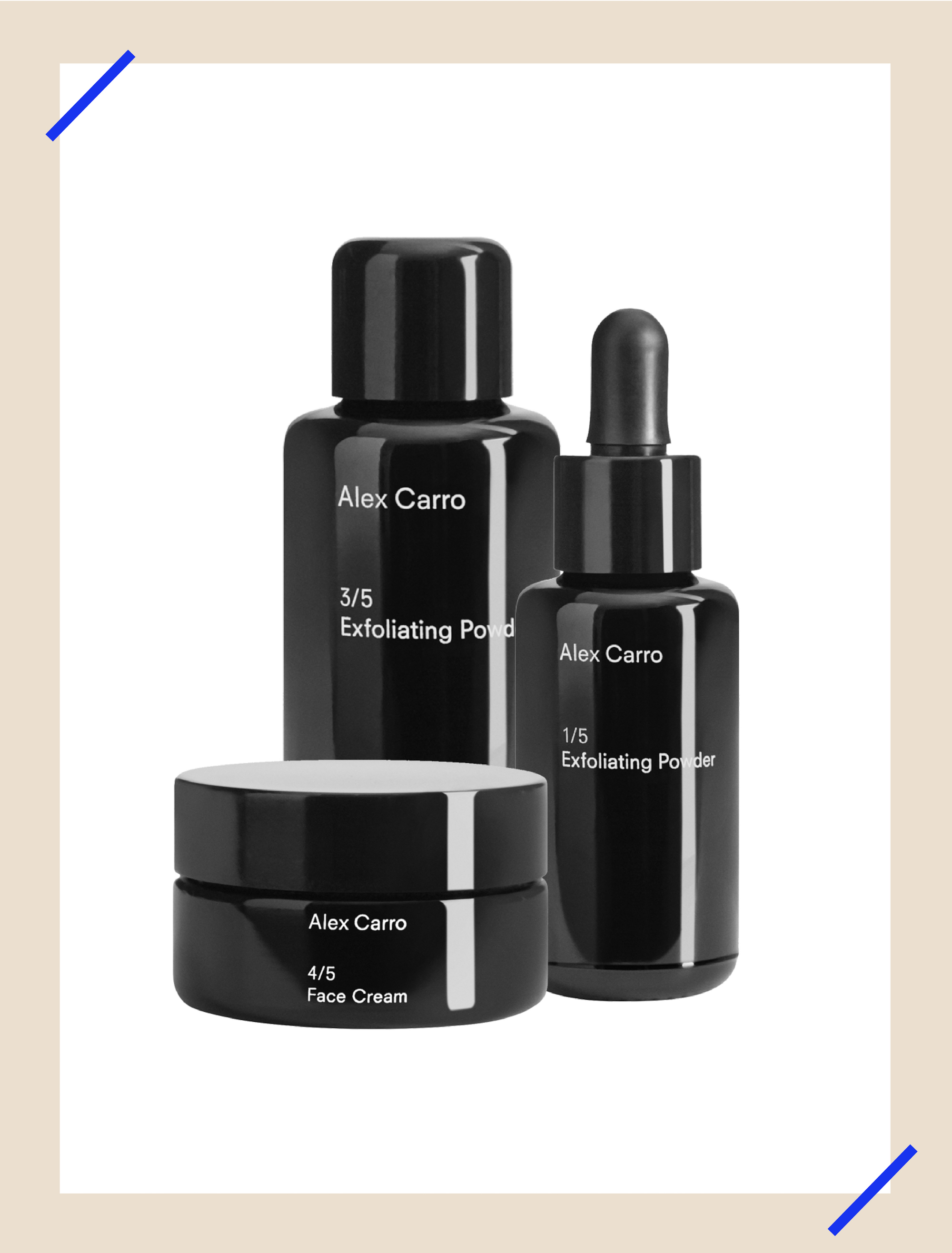 Dieser streng utilitaristische Ansatz erstreckt sich auch auf die visuelle Ästhetik der Marke und der Verpackung; Einfachheit und Effizienz von Konzept und Design unterscheidet Alex Carro von anderen Hautpflegeprodukten und Marken.