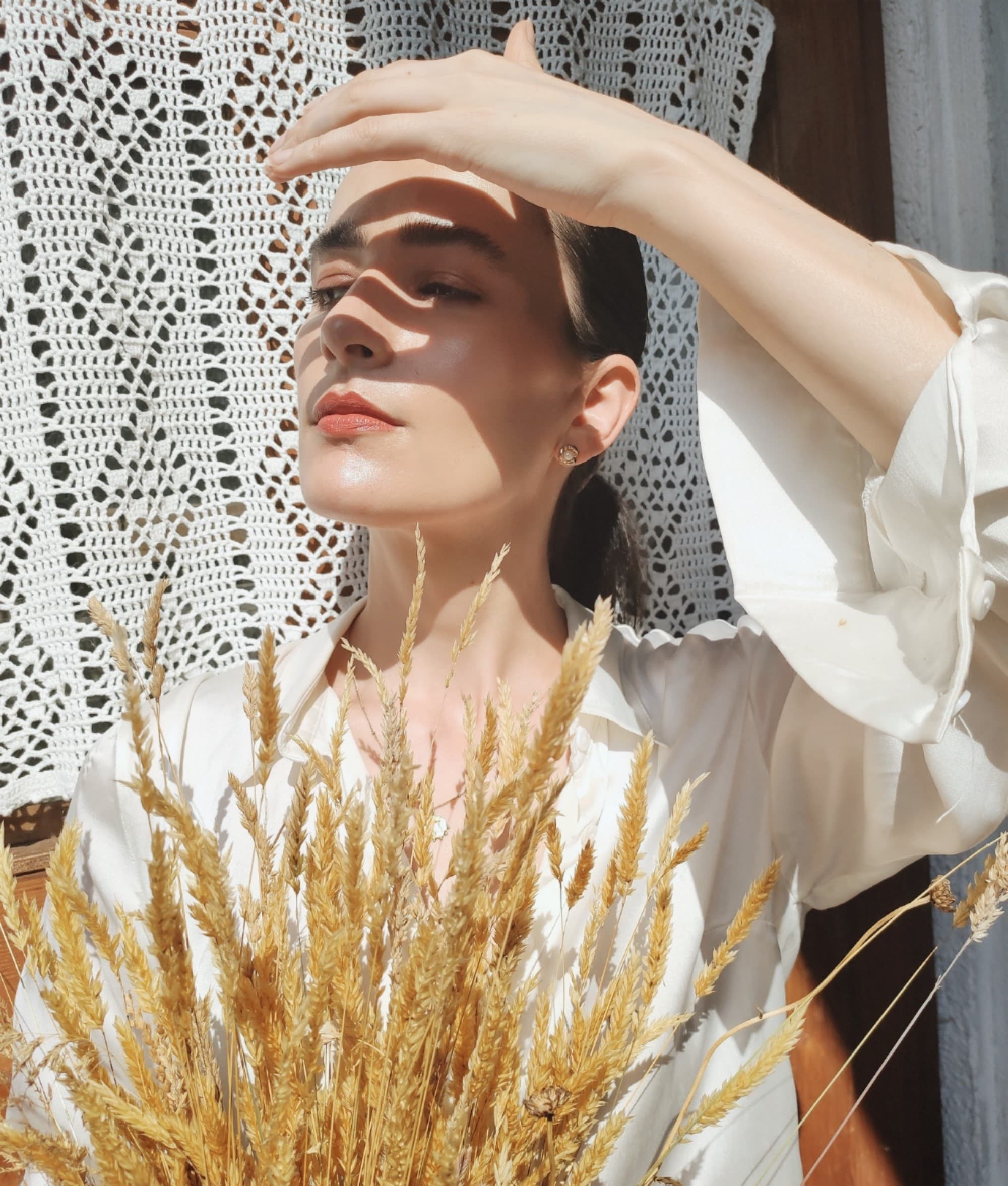 Auf den Lippen trage ich den ‚Vegan Lipstick‘ in Pink Poppy von Inika (ca. 23 €). Die Farbe ist eindeutig mehr Poppy und weniger Pink, die Textur ist wie auch bei meinem bisher liebsten Ton ,After Dark‘ super angenehm zu tragen und geruchsneutral. Noch zur Info: meine Ohrringe und Bluse sind wie fast immer second hand, die Halskette von Missoma x Lucy Williams.