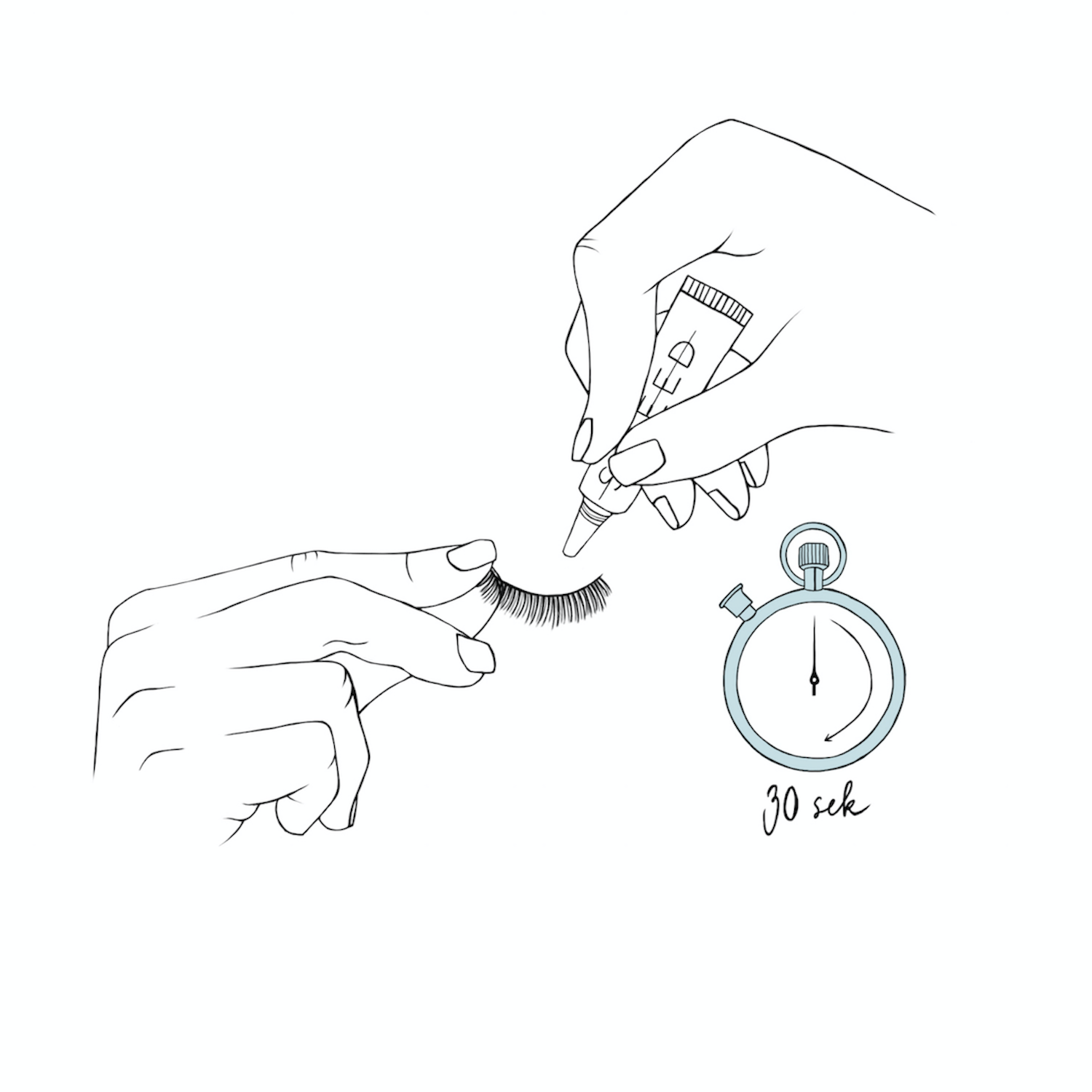 2. Trage den Kleber entlang des Wimpernbandes auf und warte 30 Sekunden.