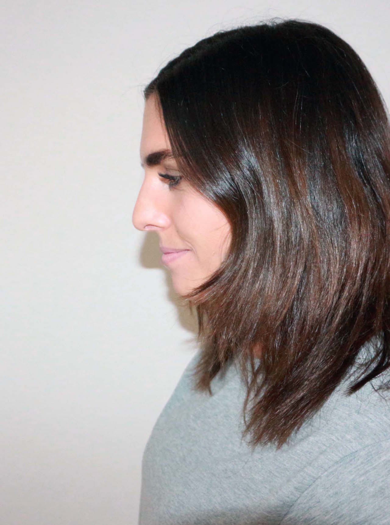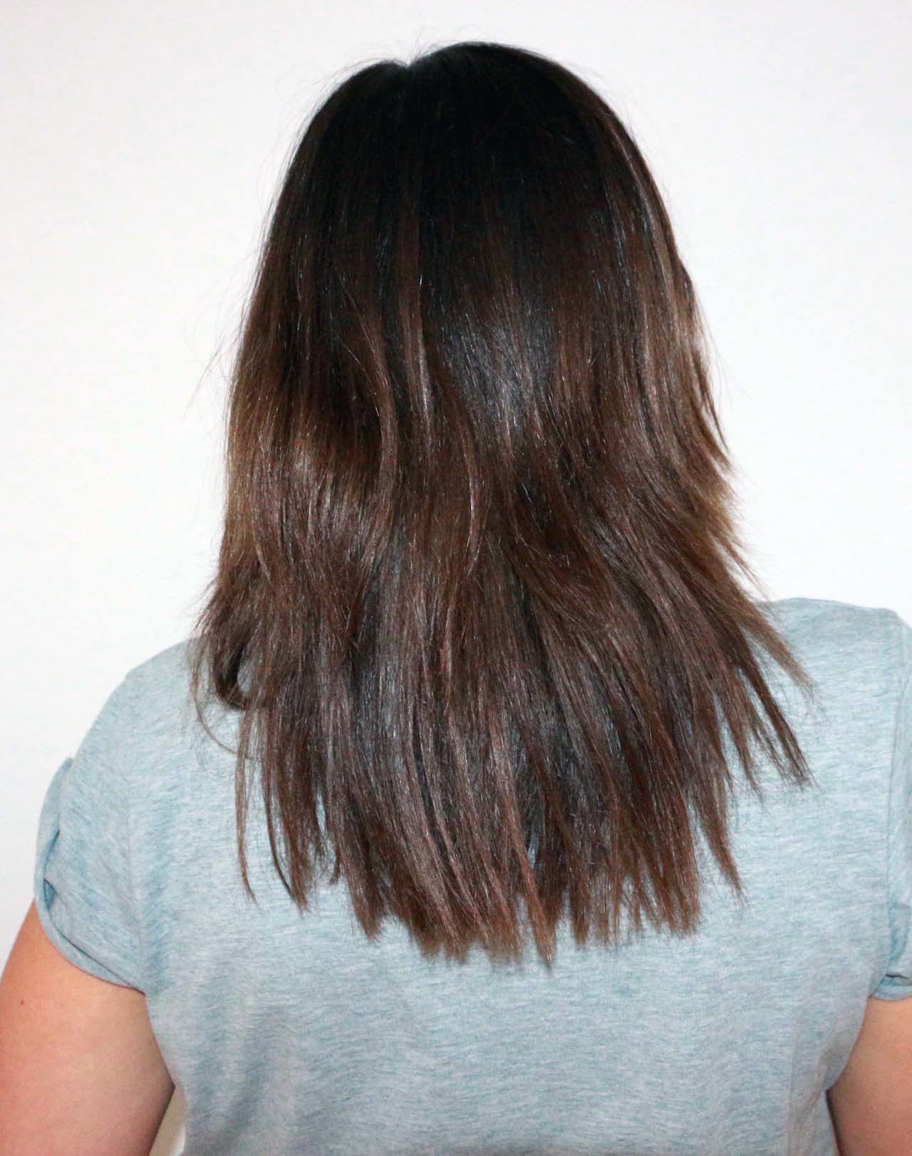 Ihr müsst euch das so vorstellen: die erste bzw. obere Hälfte meiner Haare sind die Guten. Sie sind ungefärbt, voller Glanz und superstark. Da bricht nichts ab, da fühlt sich jedes Haar topgesund an – auch wenn ich ’nur‘ Shampoo benutze. Kommen Masken, Leave-in Sprays und Pflegepower ins Spiel, erreicht das ganze nochmal ein anderes Glanz-Level. Sie sind einfach völlig unberührt, da ich sie seit meinem Wechsel von blond auf braun so gut es ging vor allem Schädlichen verschont habe.