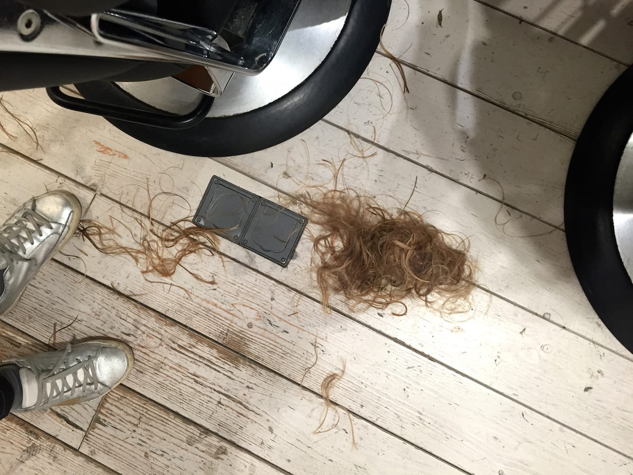 Los ging’s mit einem recht groben Schnitt – erst mal ordentlich was abschneiden. Im ersten Moment ist mein Herz kurz stehen geblieben, als ich die krass-kurzen Nackenhaaren gesehen habe, die mir da noch „übrig“ blieben. Aber Vertrauen ist alles. Bevor der Schnitt vollendet wurde, hat Andrea von Hand feine und breite Highlights in meine Längen und Spitzen gezogen – ganz frei und so wie es zu meinem Haar passt. Das sollte dann für einen natürlichen Ombré bzw. Balayage-Look sorgen.