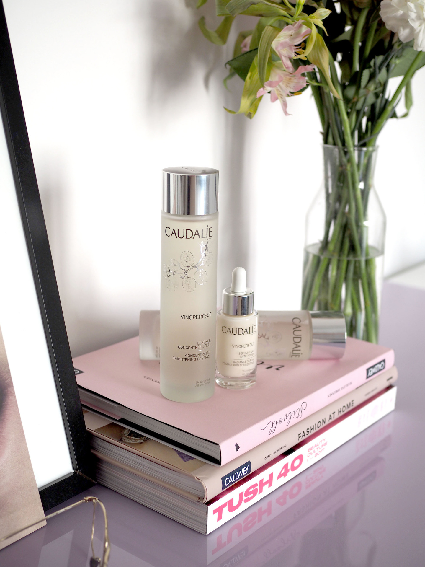 Die bereits erwähnte Essenz von Caudalie ist ein Drei-in-Eins-Produkt. Die enthaltene Glykolsäure beseitigt abgestorbene Hautzellen, wirkt also wie ein sehr sanftes Peeling, was ideal für empfindliche Hauttypen ist. Der Kultinhaltsstoff von Caudalie, das Weintraubenwasser, ist auch in dieser Essenz enthalten – es beruhigt, pflegt und hydratisiert. Der Extrakt weißer Pfingstrosen sorgt schließlich für einen strahlenden Teint und einen natürlichen Glow.